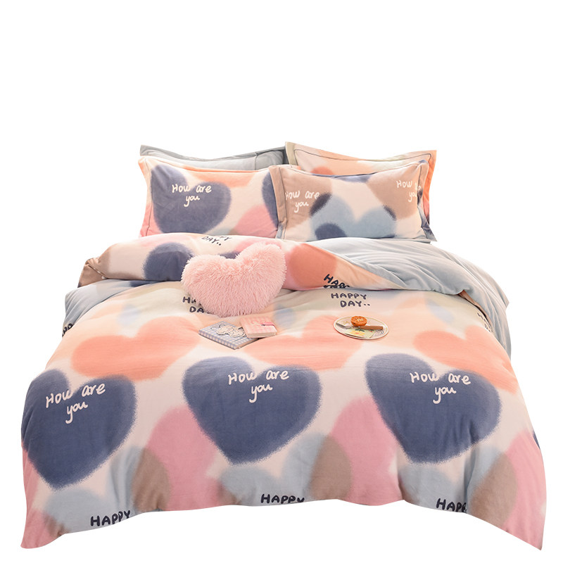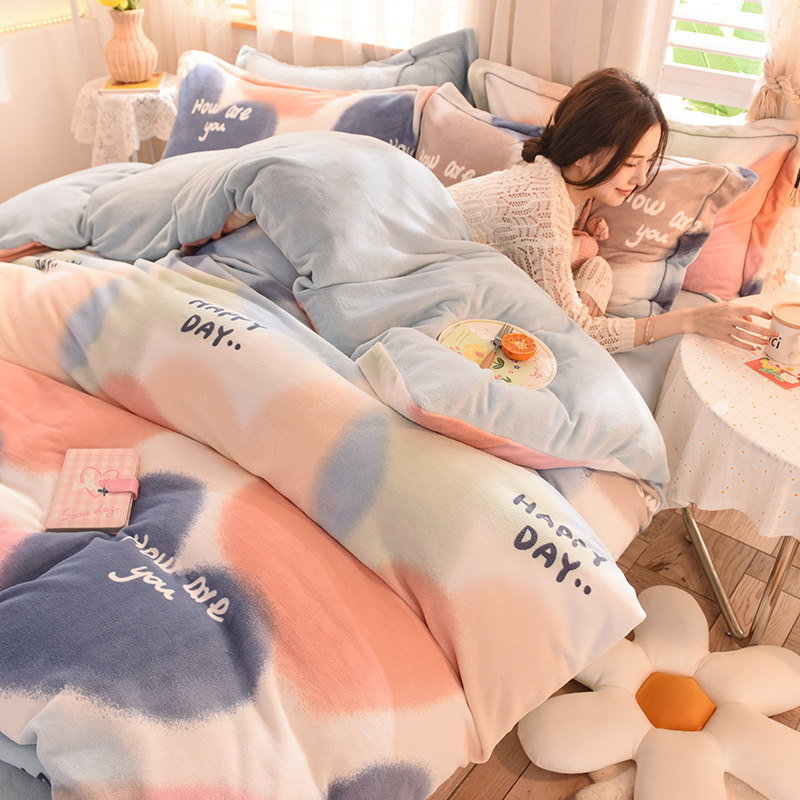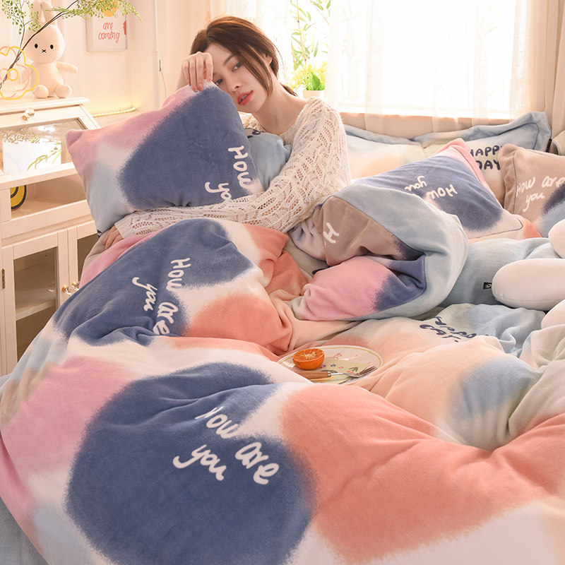 秋冬季加厚四件套牛奶绒被套床单双面加绒被罩床笠学生宿舍三件套