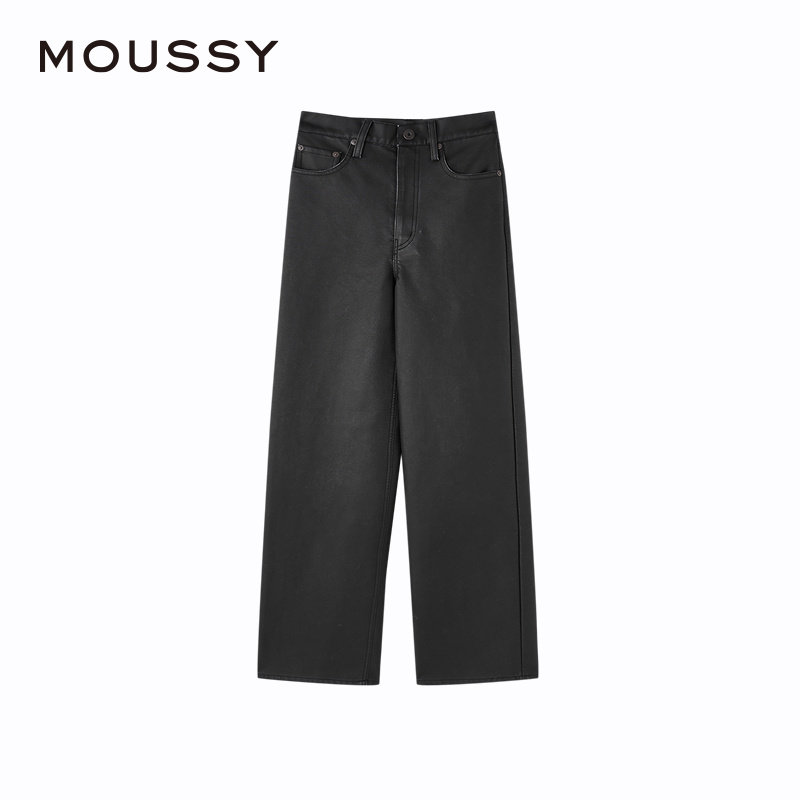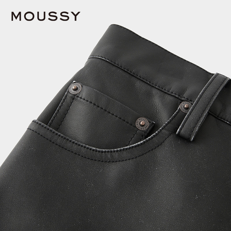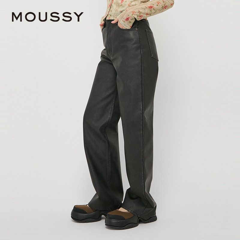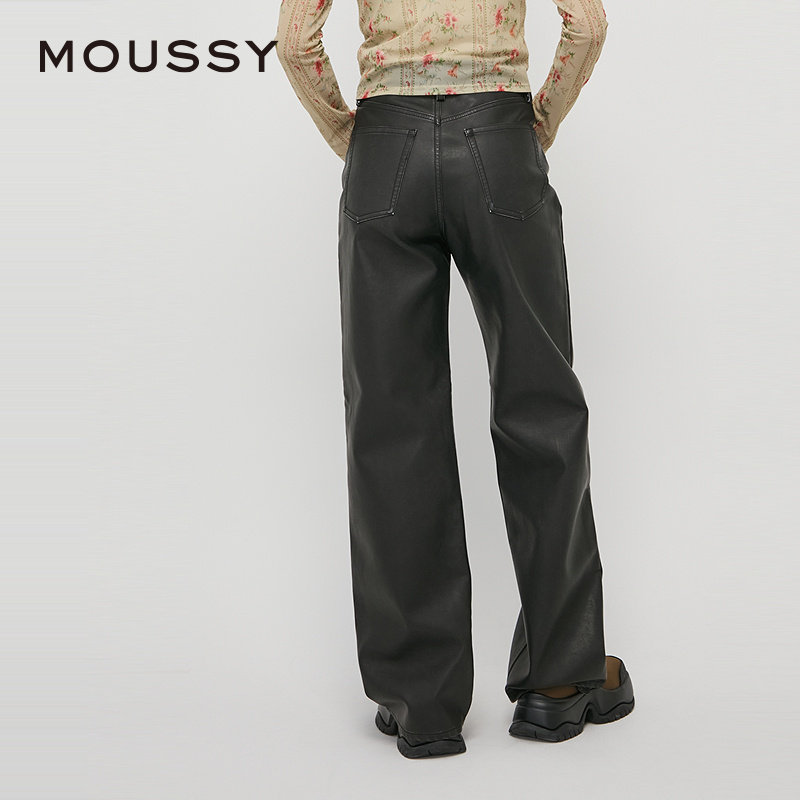 moussy 秋季新品复古港风皮裤气质阔腿裤休闲裤028HAZ30-0631