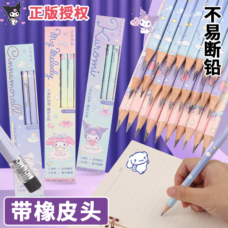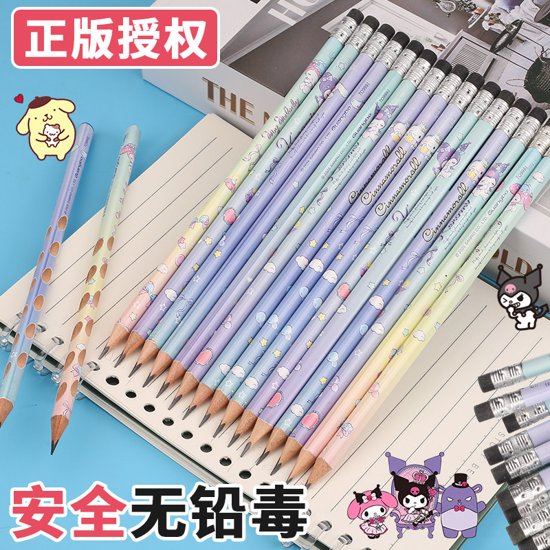 三丽鸥洞洞铅笔小学生安全一年级专用幼儿园用三角杆铅笔hb考试铅笔可爱卡通库洛米无毒初学者练字矫正握姿