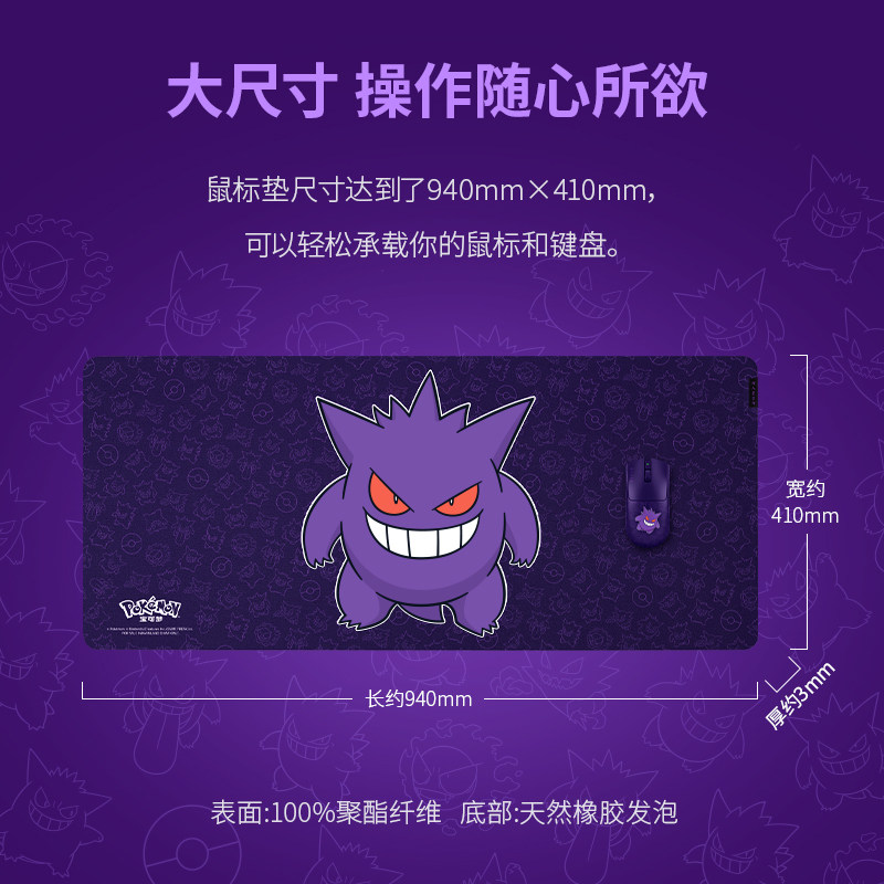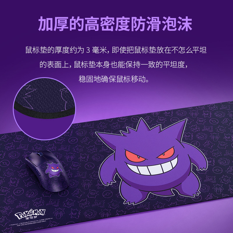 Razer雷蛇宝可梦耿鬼联名重装甲虫V3电脑电竞游戏办公鼠标垫礼物