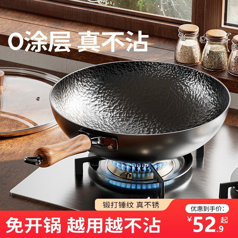 铁锅官方旗舰炒菜锅老式炒锅铁锅家用不粘锅无涂层燃气灶适用