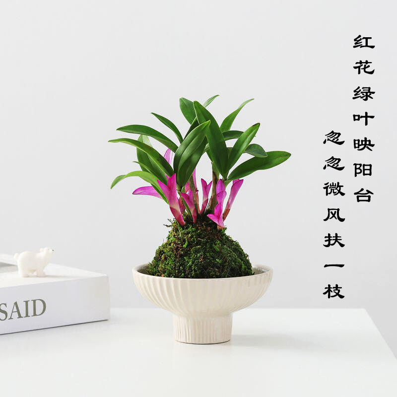 水培七彩石斛兰米竹苔藓球带花姬月季盆栽懒人好养绿植室内花卉