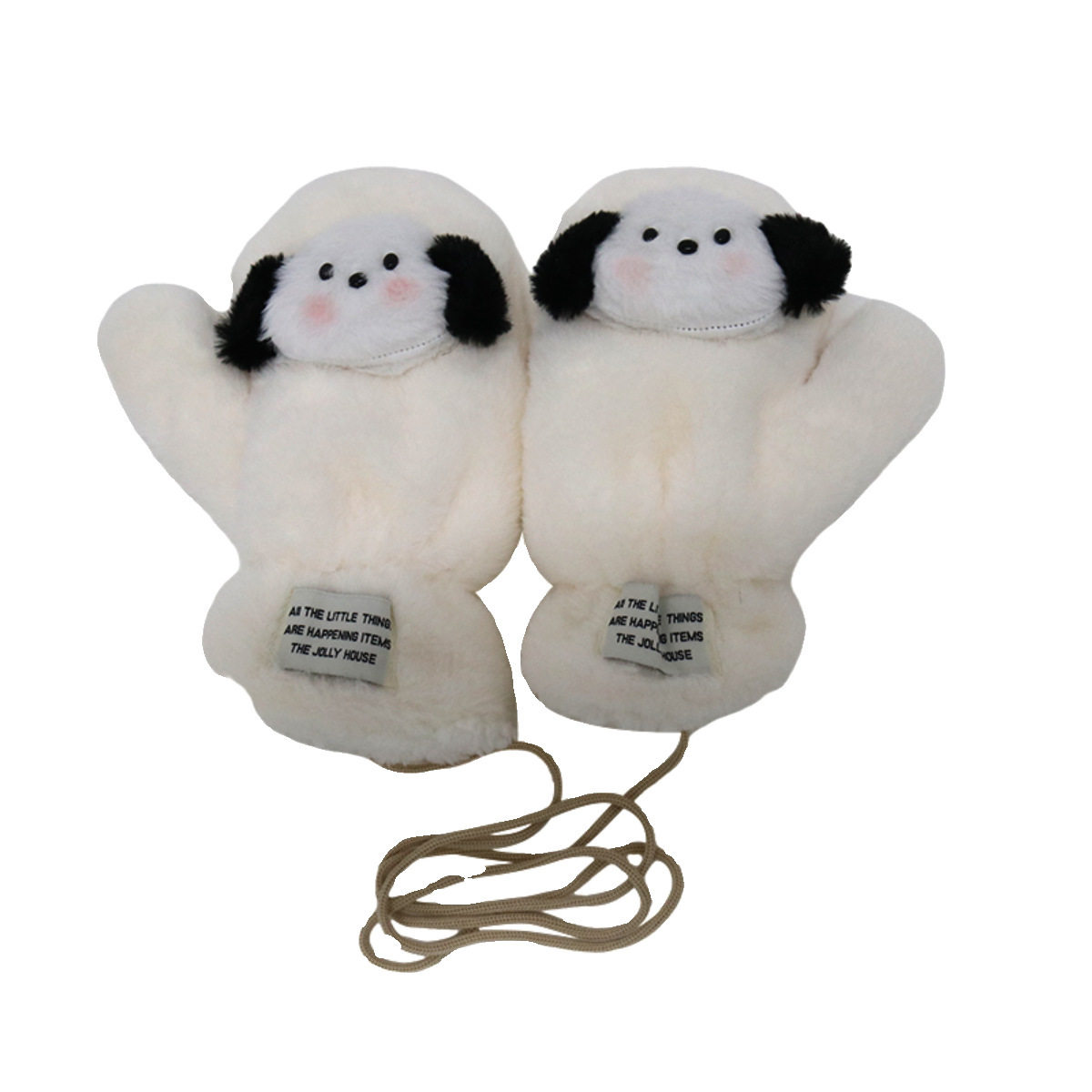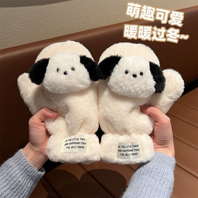 可爱毛绒手套女冬季小狗保暖加绒加厚全包连指学生骑行防寒手套