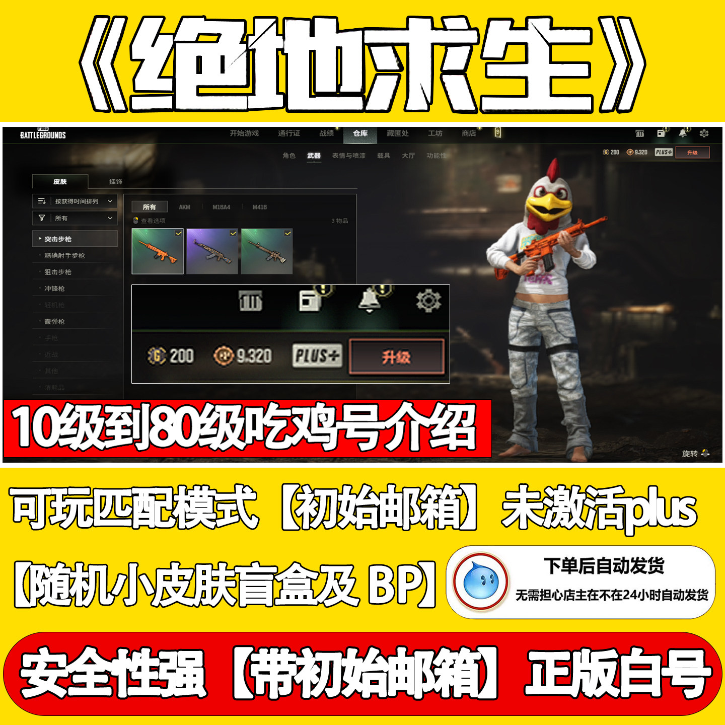 pubg账户steam绝地求生账号10级/80级吃鸡账号皮肤号排位号匹配号