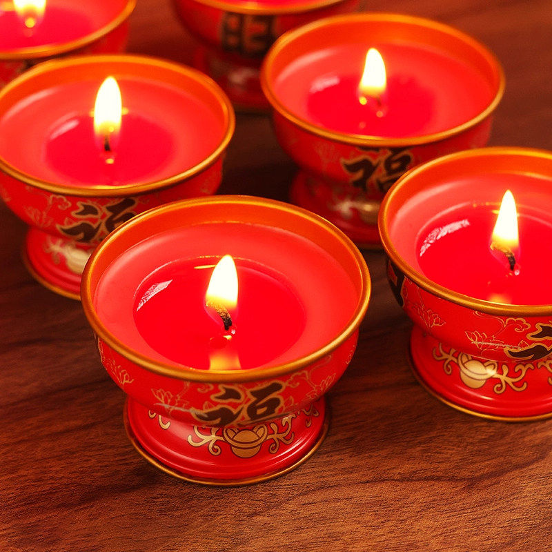 元宵节过年节庆用品蜡烛酥油灯长新款铁壳家用无烟长明灯好环保