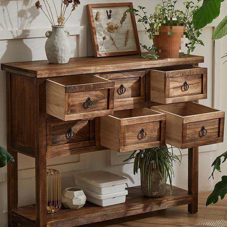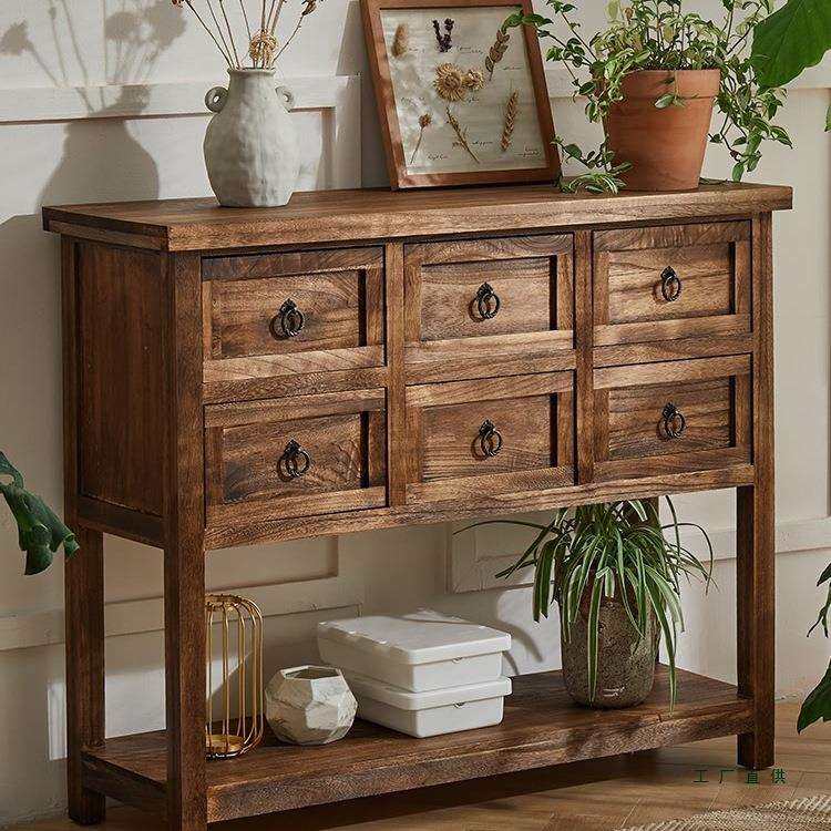 美式乡村实木斗柜复古玄关柜客厅收纳柜子置物架家用靠墙矮柜整装
