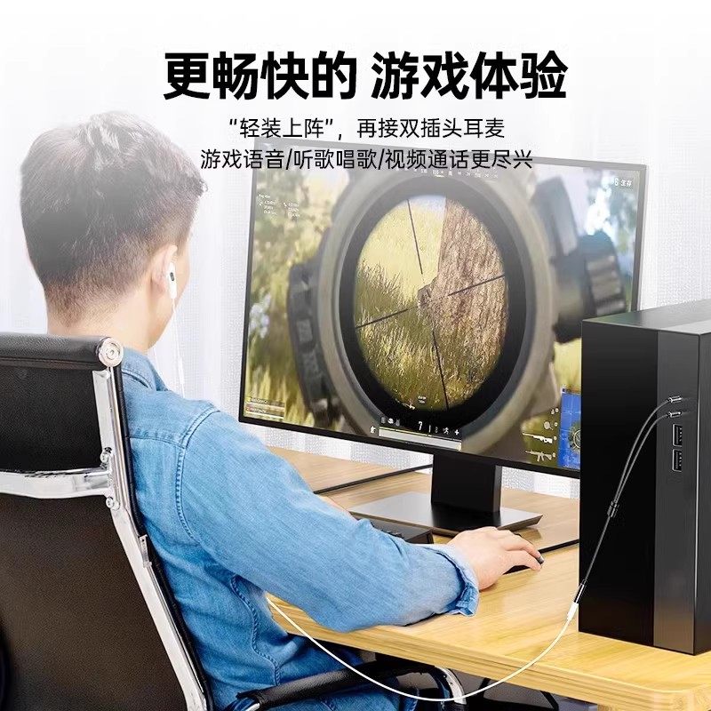 山泽电脑耳机麦克风二合一转接线台式机主机耳麦转接头手机耳机一分二3.5mm音频线一转二1分2笔记本圆孔双插