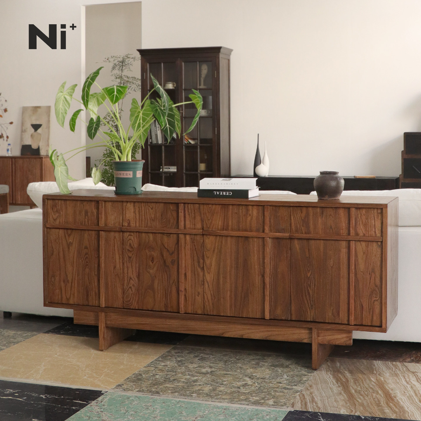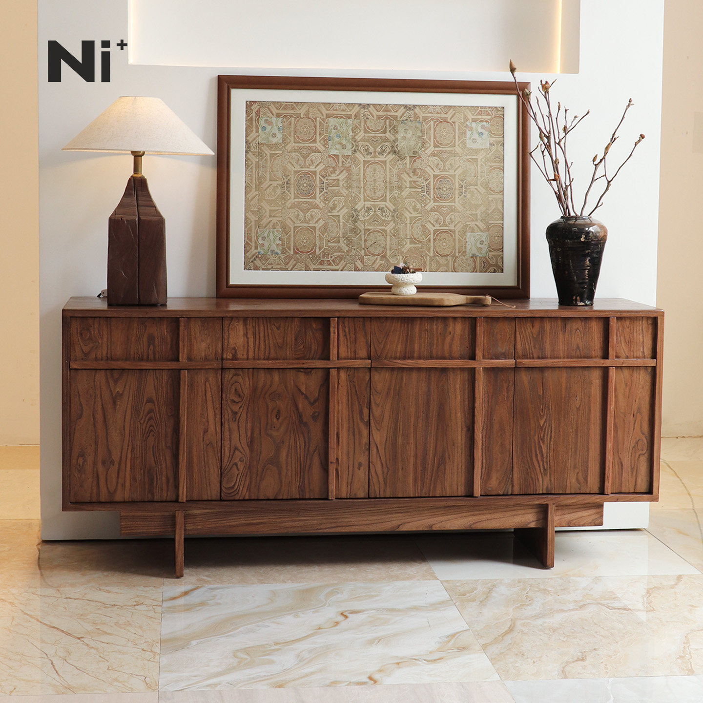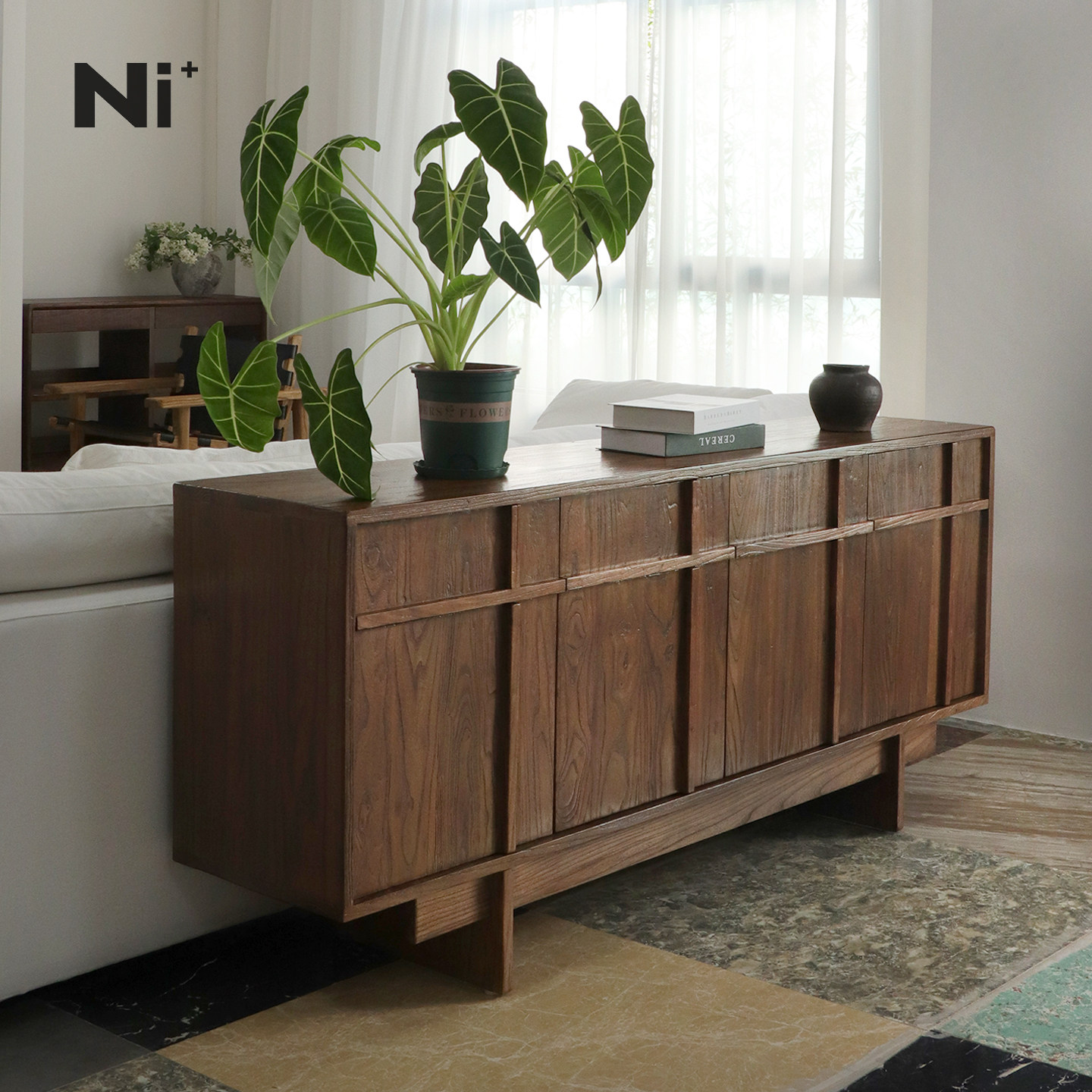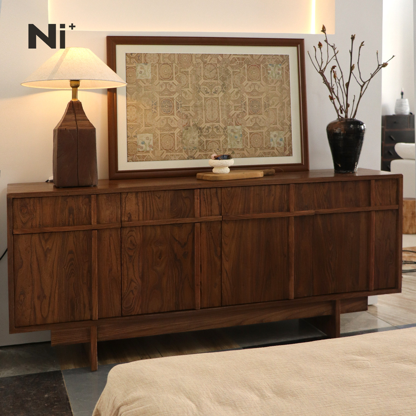 Ni尼家骨格线餐边柜侘寂风边柜实木中古风玄关柜复古收纳储物柜子