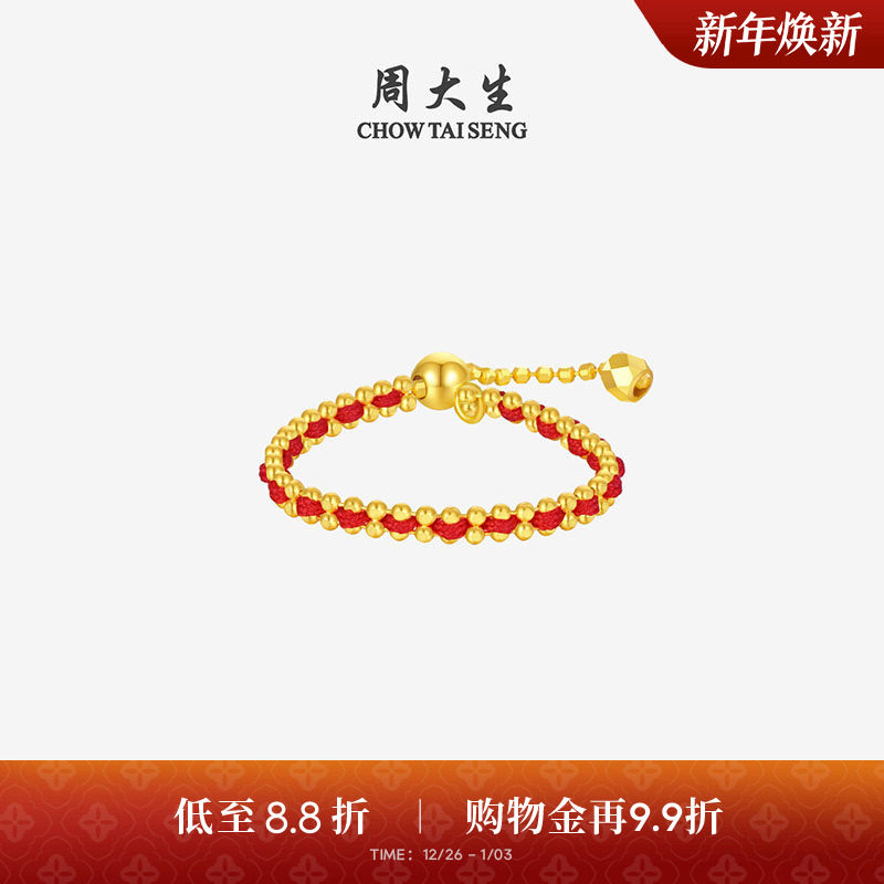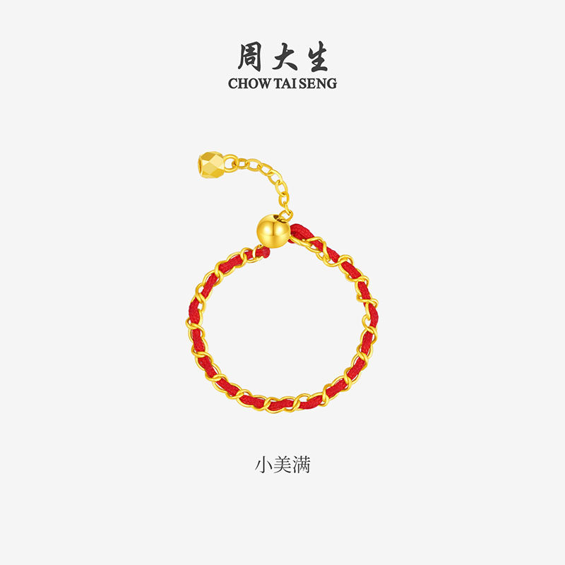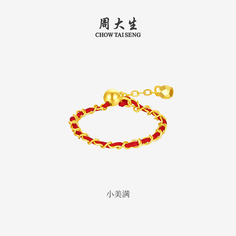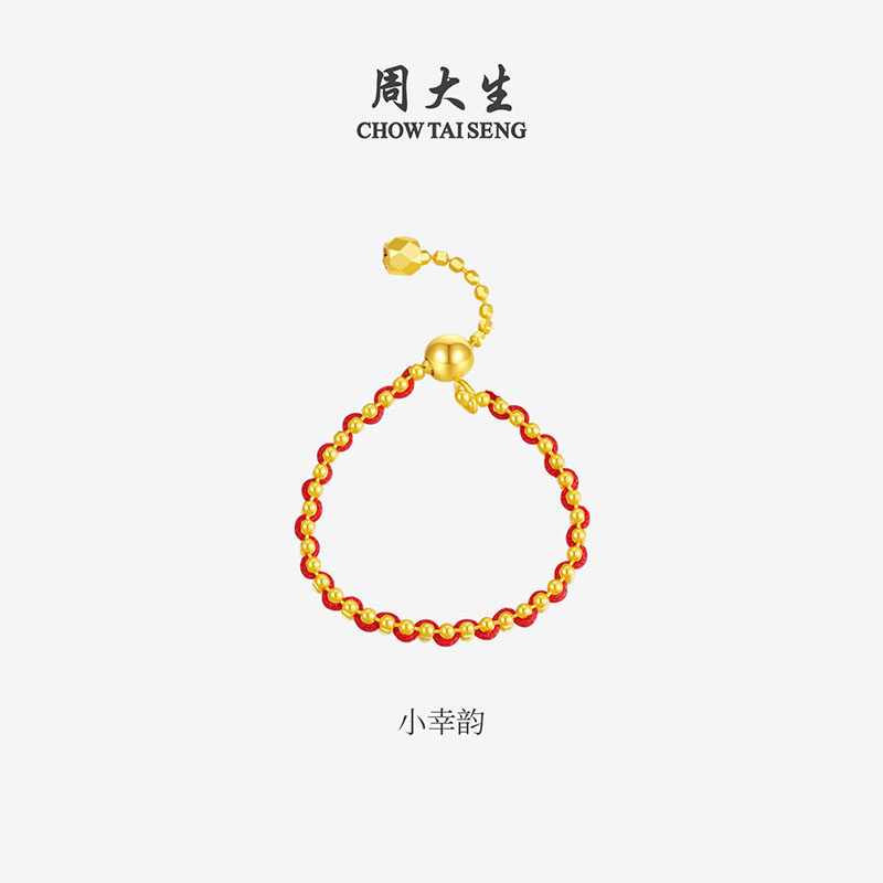 周六福黄18K金红绳手链多彩金女叠戴如意手绳转运圣诞礼物