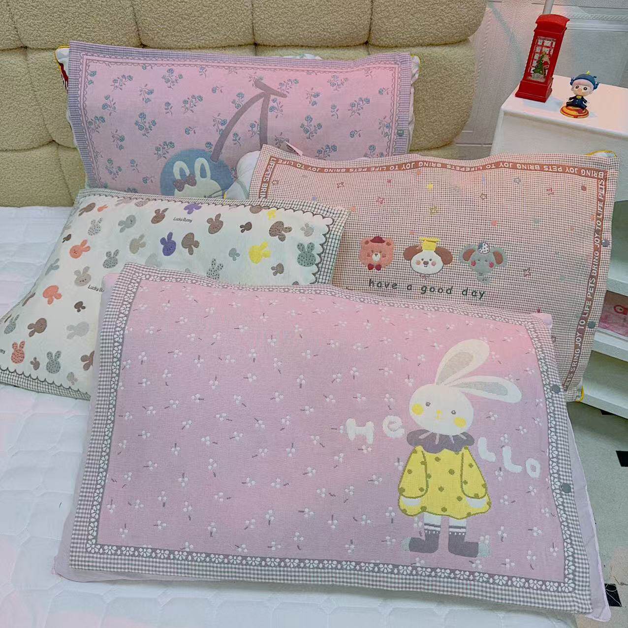 高密按扣式纯棉纱布卡通儿童枕套宝宝家用全棉加厚枕芯内胆套星星