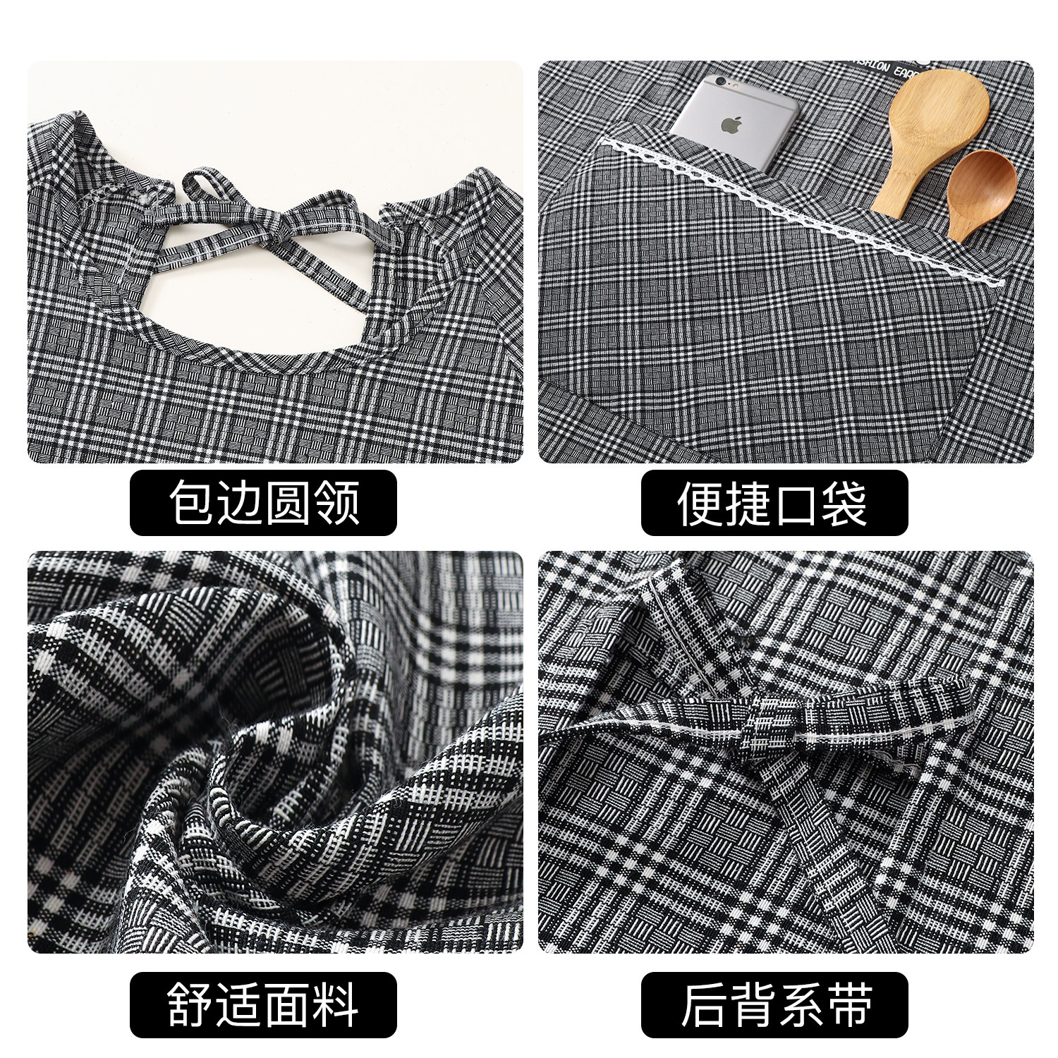2026日本新款棉麻长袖围裙家用厨房透气罩衣女耐磨防污做饭工作服