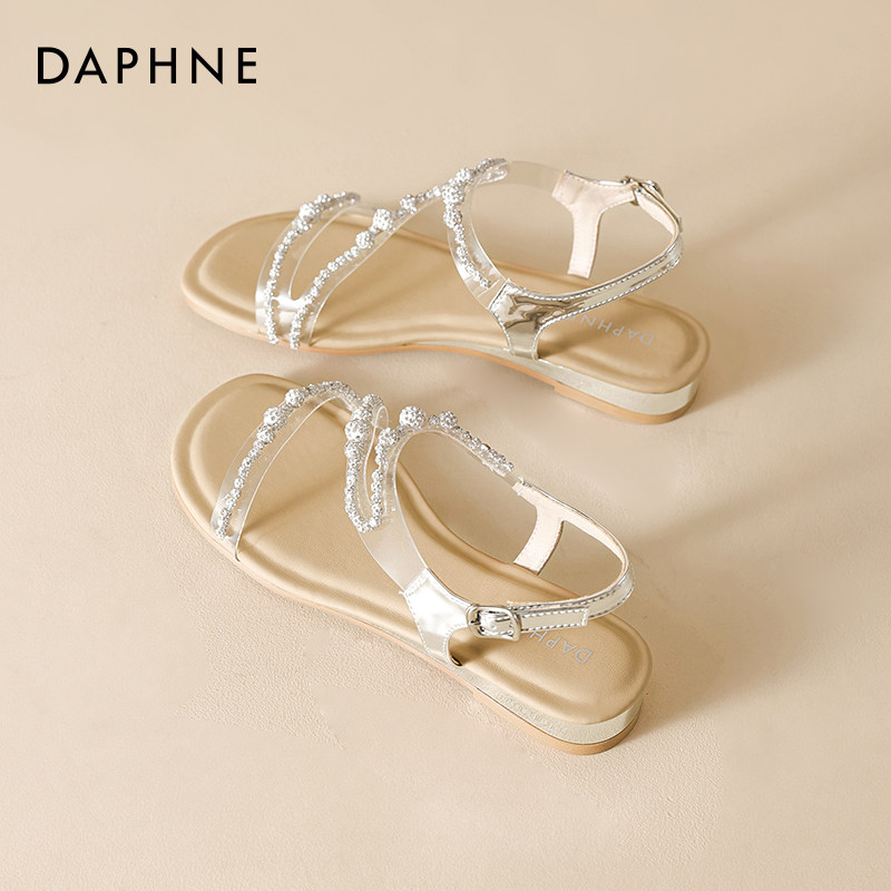 达芙妮水钻平底凉鞋女夏季2026新款外穿露趾法式仙女风配裙子凉拖
