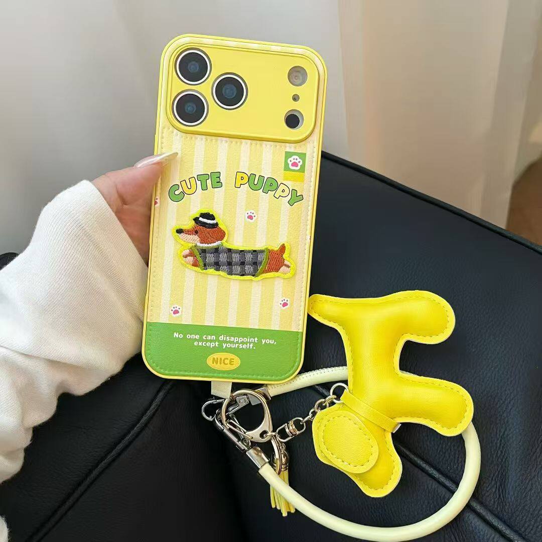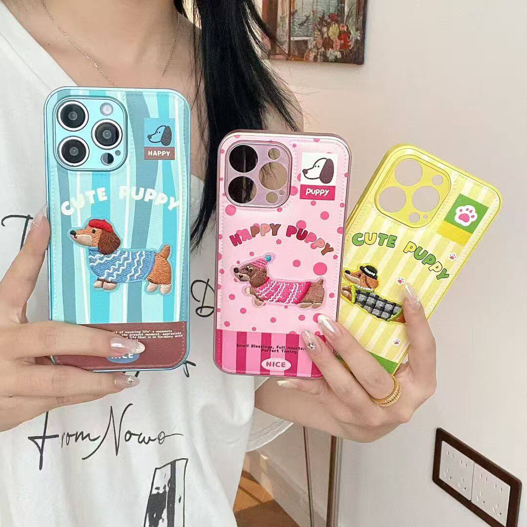 适用于全包皮质波点条纹狗苹果17promax手机壳iPhone14/13防摔15/16pro