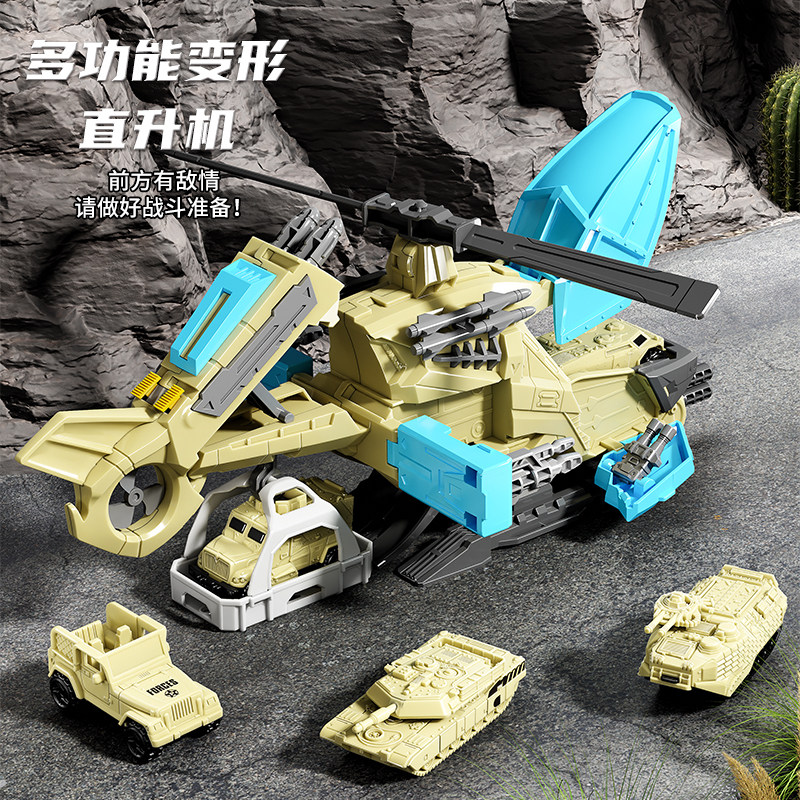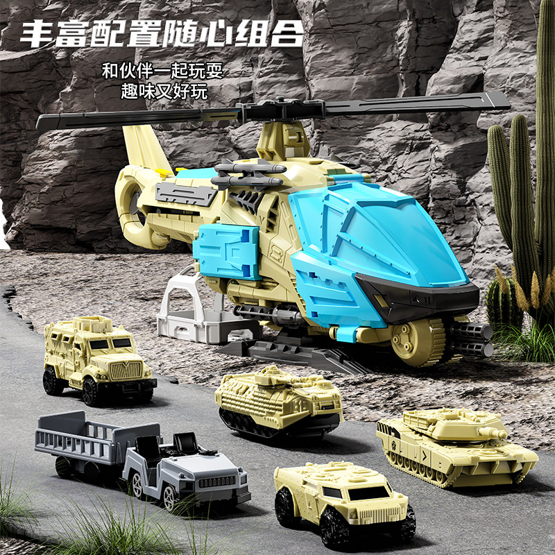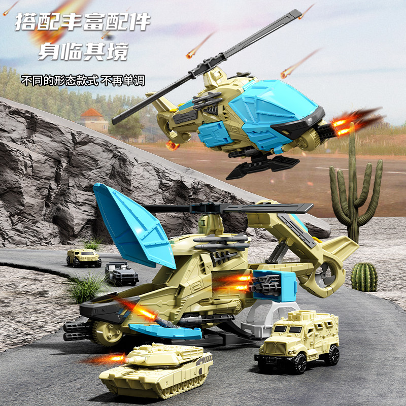 儿童静态模型玩具手动摆件军事警察直升飞机可变形男孩生日礼物