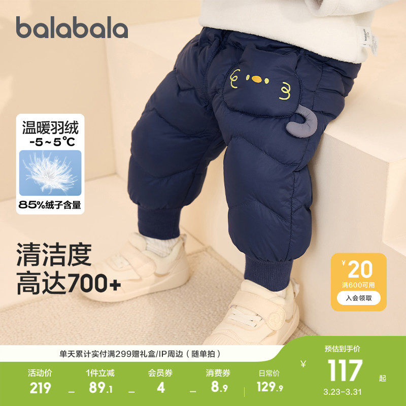 巴拉巴拉婴儿羽绒裤男童长裤女童裤子保暖裤宝宝高腰冬季加厚加绒