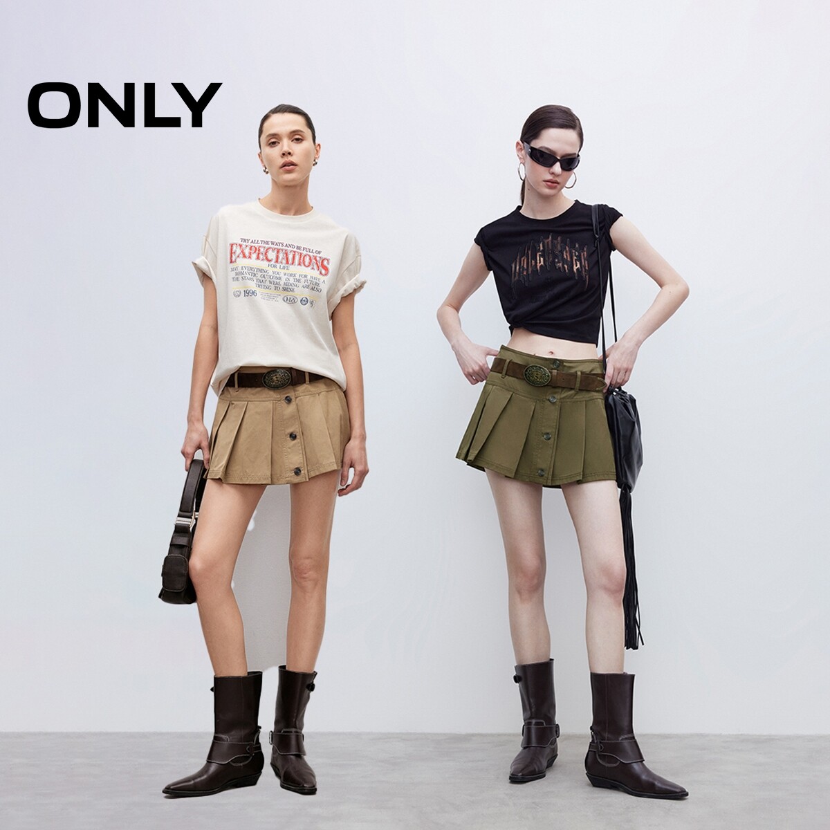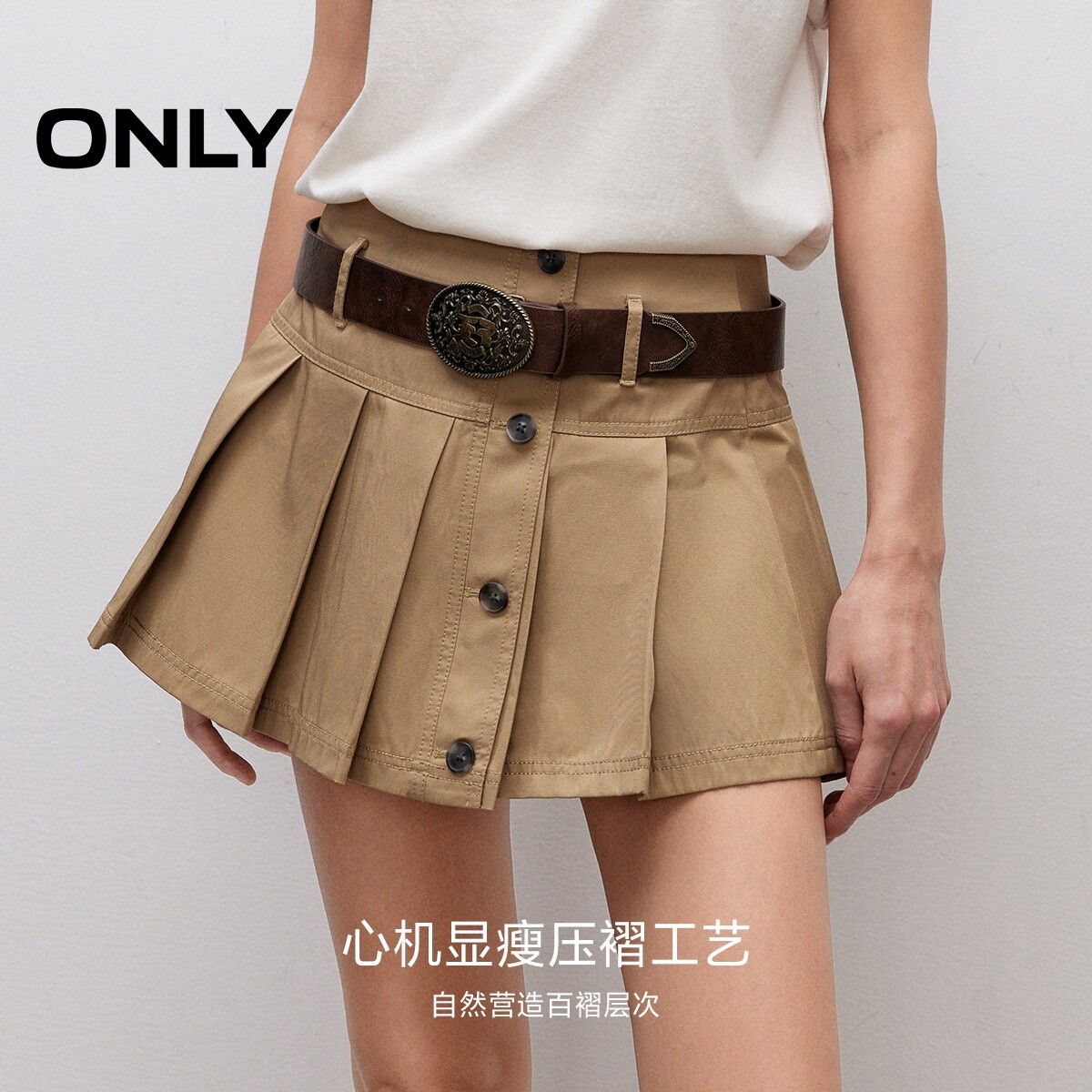 【ONLY奥莱】春夏款复古纯色A字版型显瘦高腰短裙百褶裙半身裙女