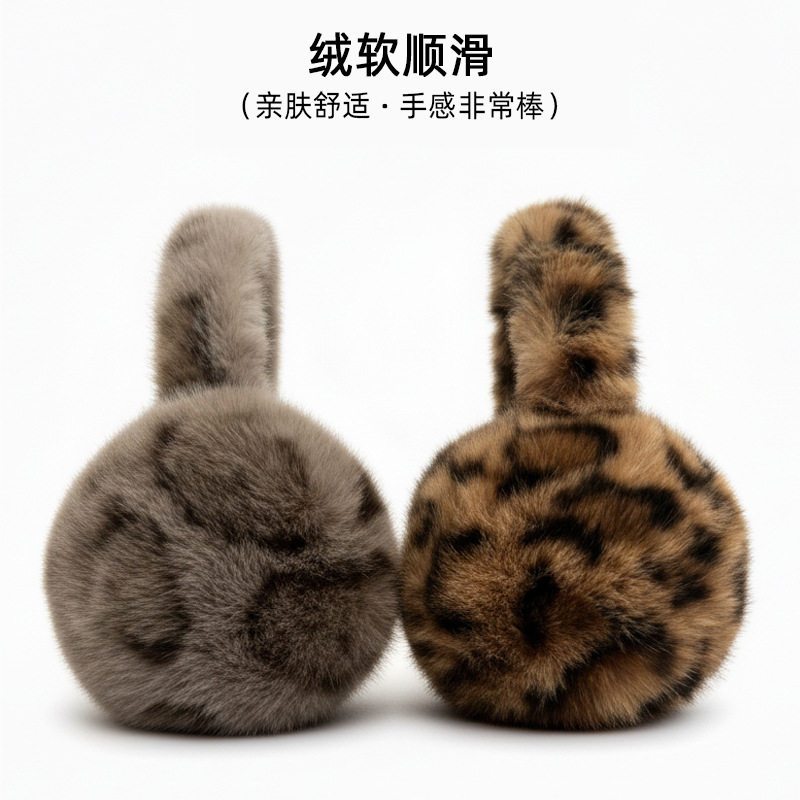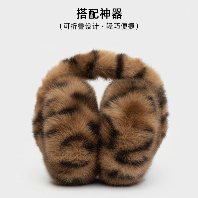 豹纹毛绒耳罩女秋冬季护耳帽耳包耳套耳朵保暖耳捂子加厚防寒神器