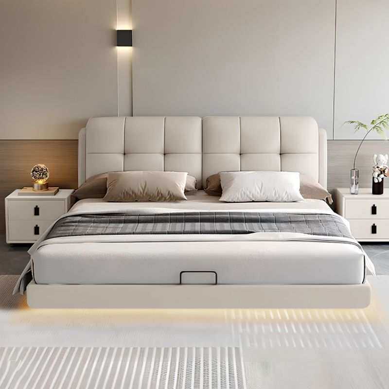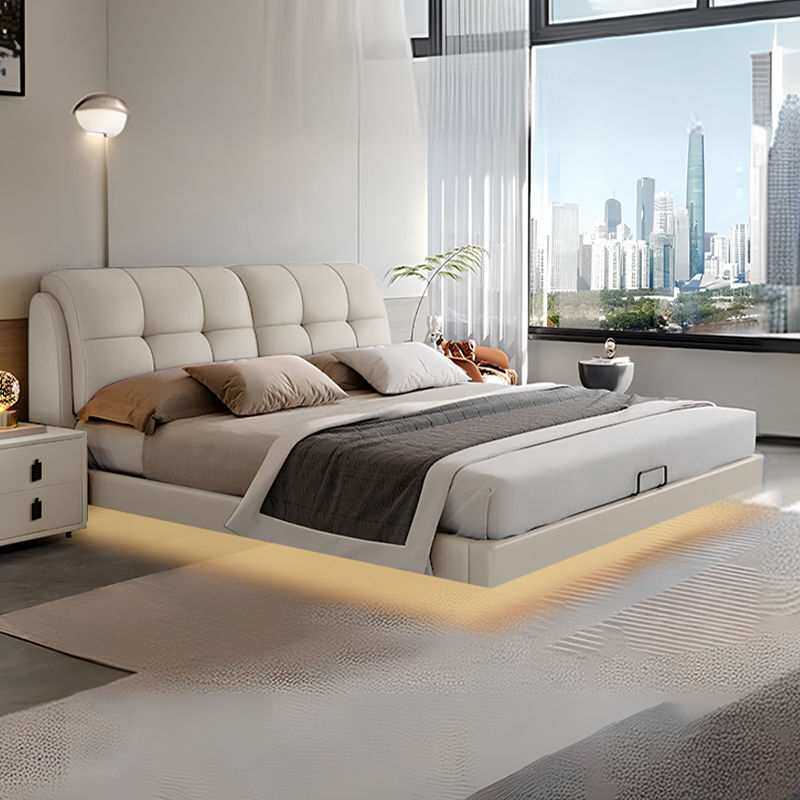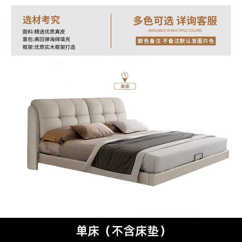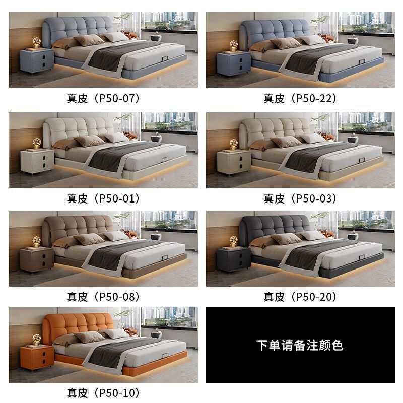 现代简约真皮悬浮床2025新款主卧室双人床带灯储物软包实木皮艺床