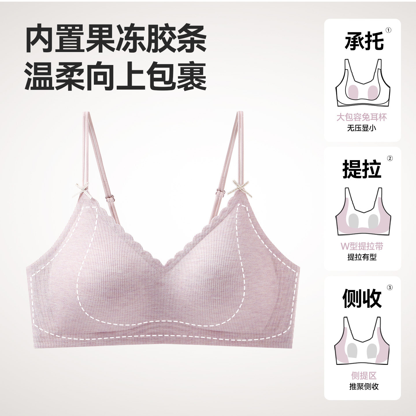 菇娘家兔耳杯内衣女大胸显小胸聚拢收副乳防下垂无痕隐形女款文胸