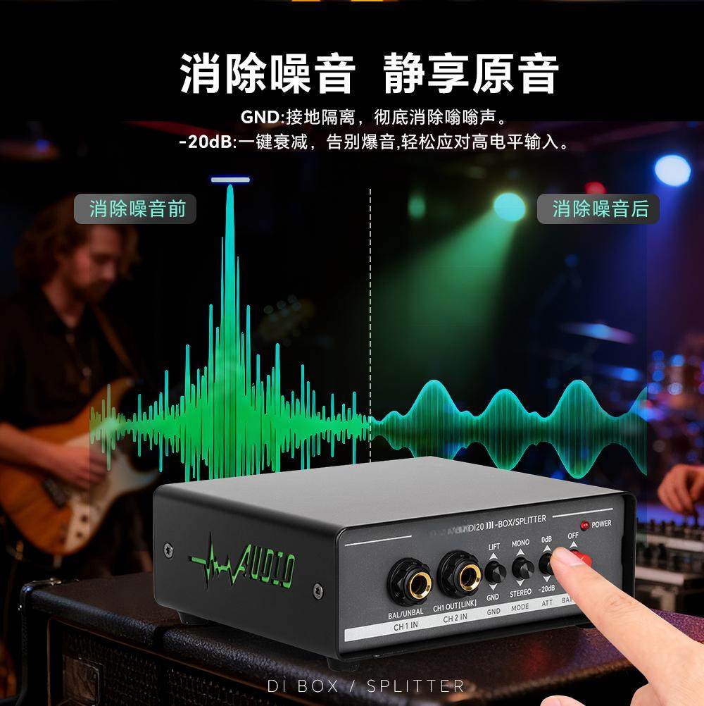 贝斯吉他有源DI盒 乐器传感器DI盒 阻抗变换DI效果器 音频隔离器