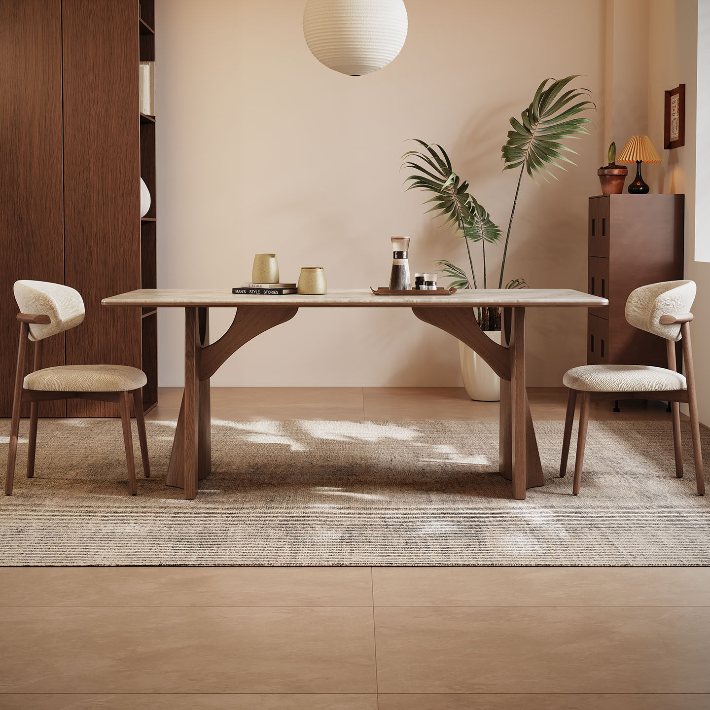 奥古斯特 大理石餐桌2025新款长方形高端中古风飞鸦实木岩板餐桌