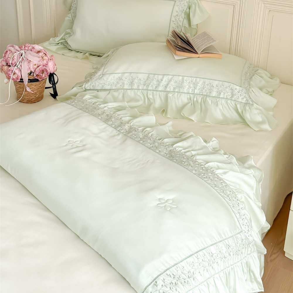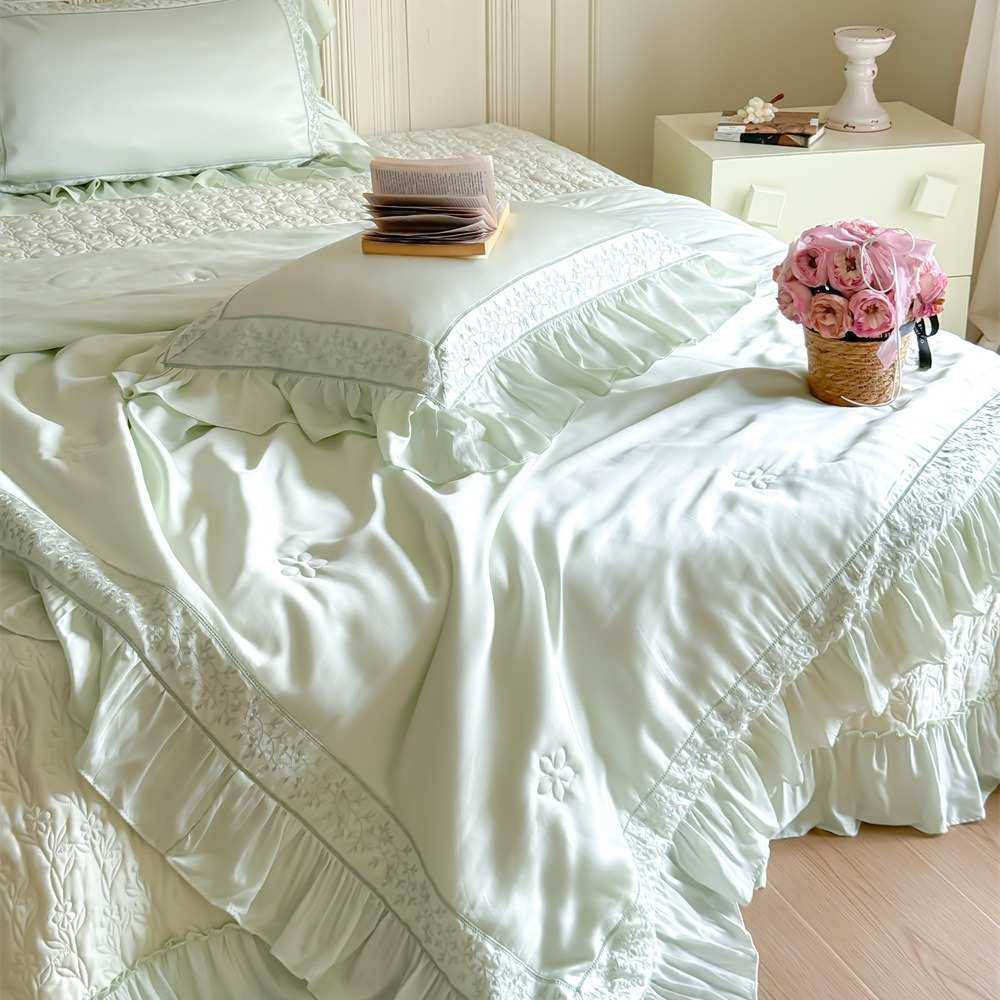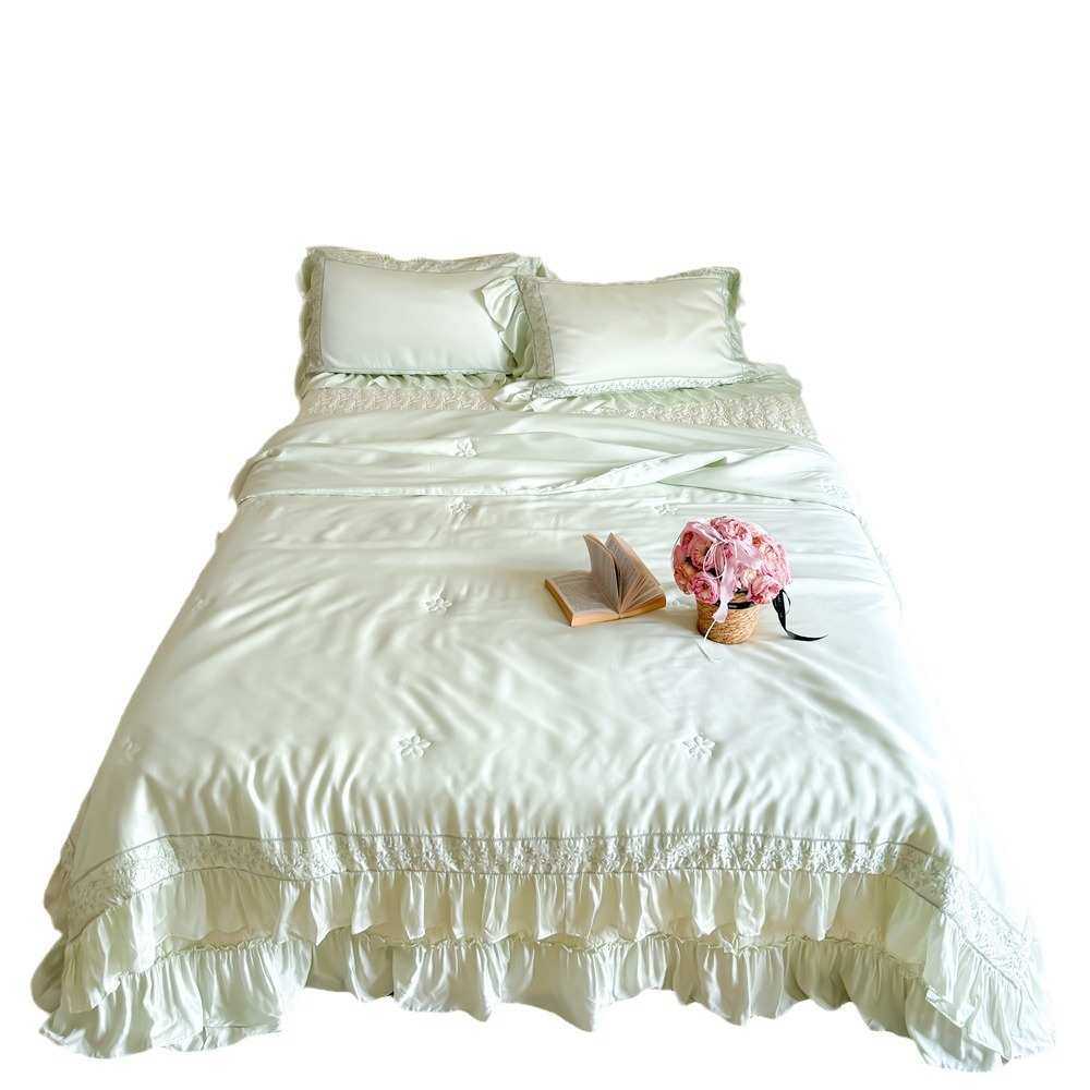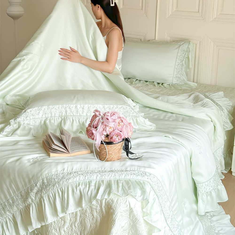 韩版公主风兰精天丝夏被床盖四件套荷叶花边刺绣清凉夏日床品