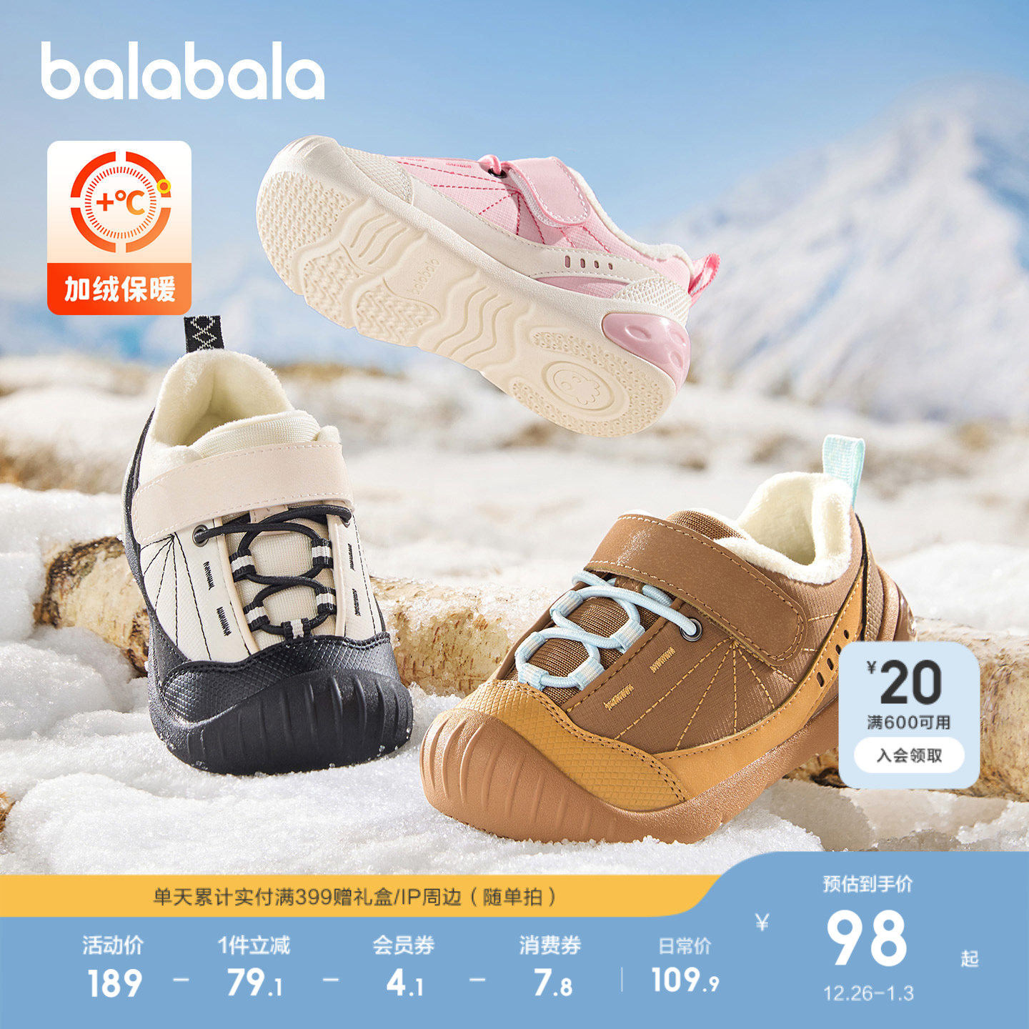 加绒防滑学步鞋,撞色户外好搭配