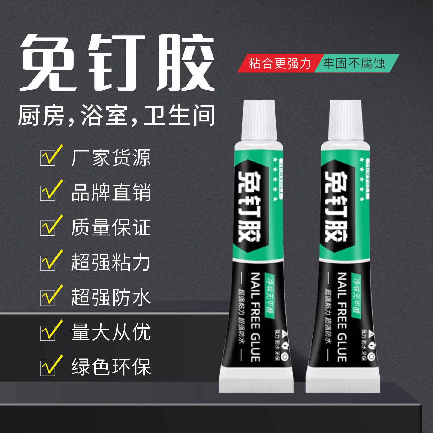 免钉胶高粘胶水代钉胶强力胶墙面瓷砖专用门窗透明挂钩置物架高粘度贴小支速干踢脚线通用白色免打孔免钉胶水