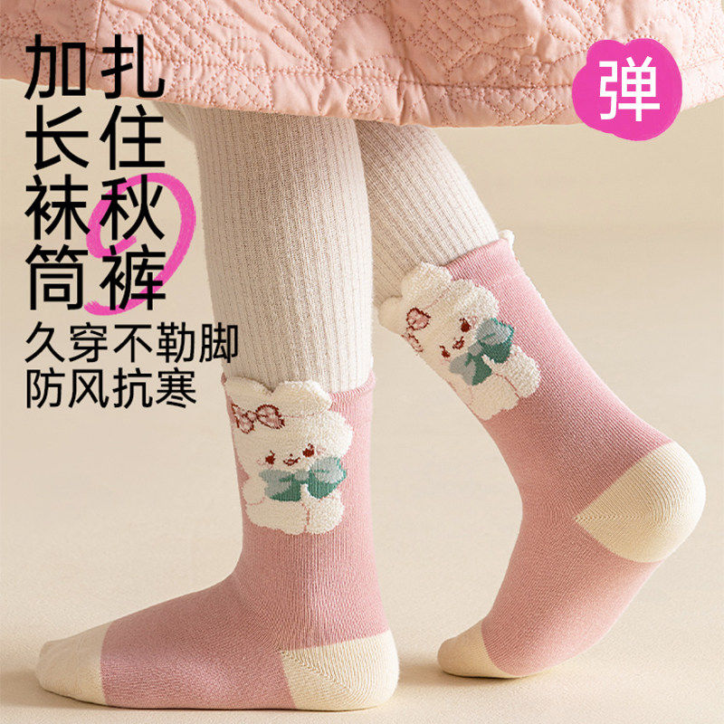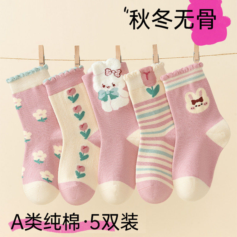 儿童袜子春秋款精梳棉袜女孩童袜宝宝秋冬棉袜A类无骨中筒袜纯棉