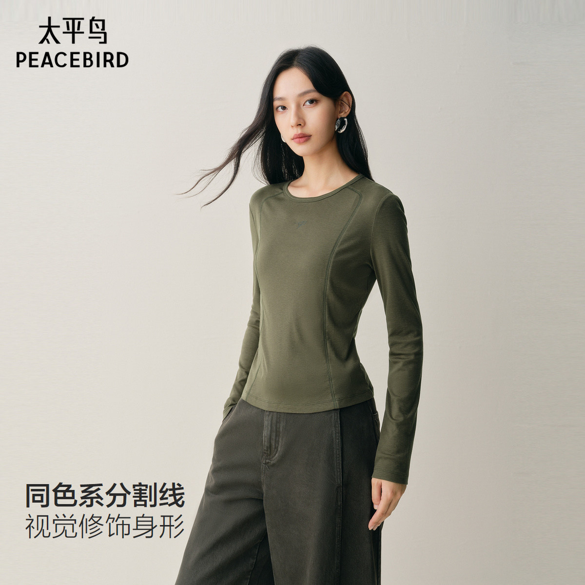 三福长袖上衣女2025新款秋冬季圆领内搭打底衫修身白色t恤女装