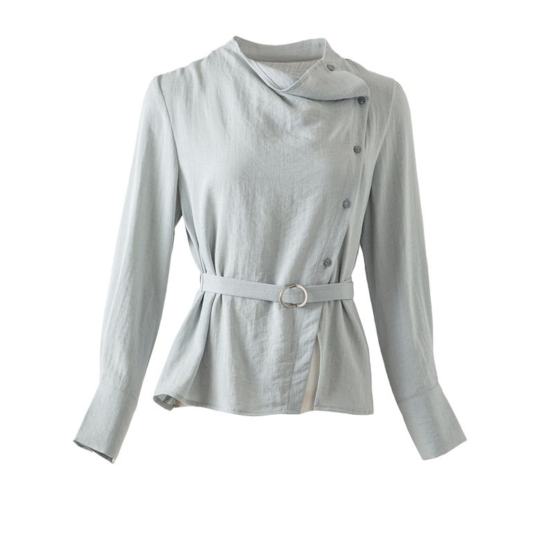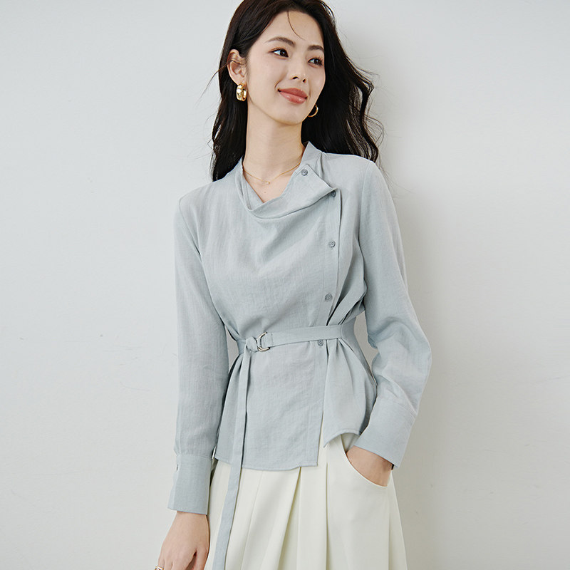 晚白2026年春新款设计师款不规则荡领亚麻上衣柔软透气知性衬衫女