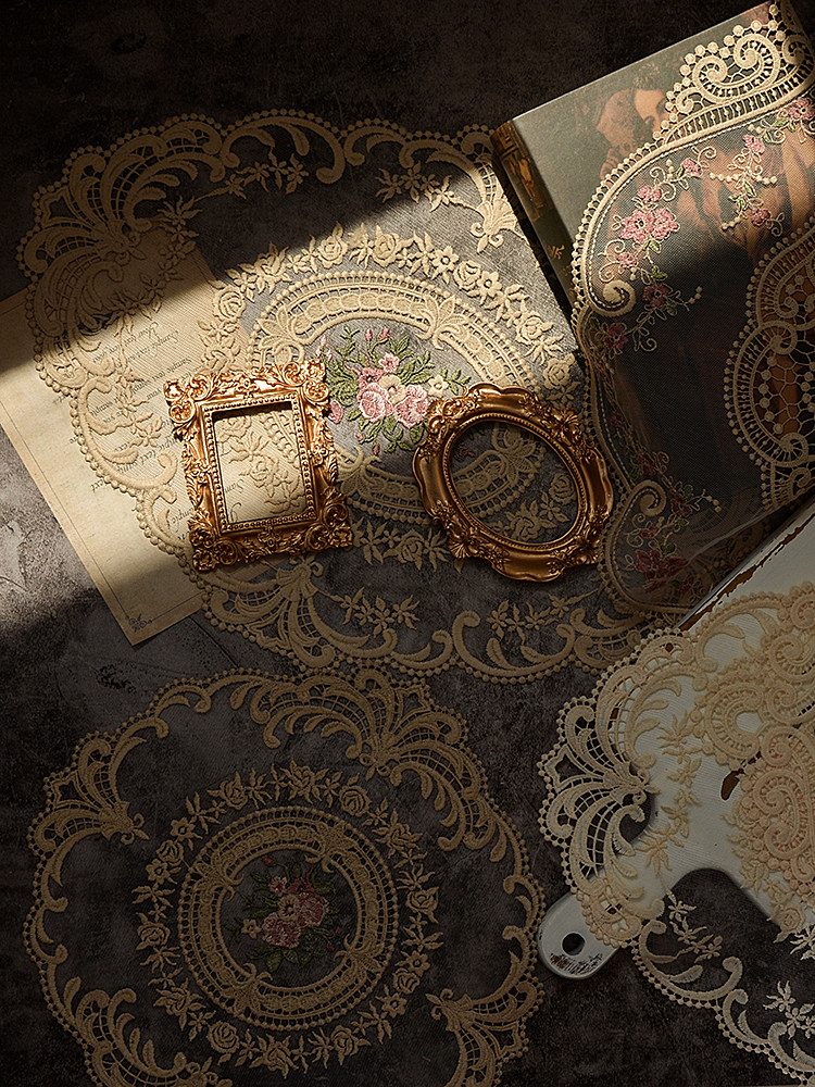 欧式复古蕾丝餐垫杯垫桌垫法式做旧风背景布美食摄影装饰拍摄道具