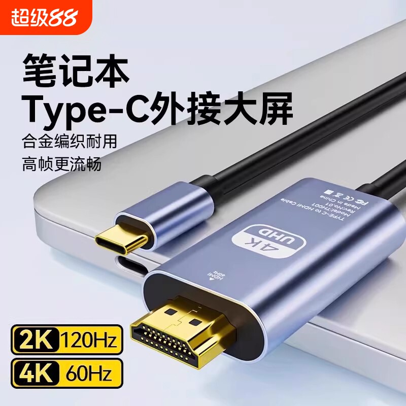 typec转hdmi手机电脑4K电视机同屏转换连接线显示器投影高清typc数据安卓投屏线ipad平板笔记本通用
