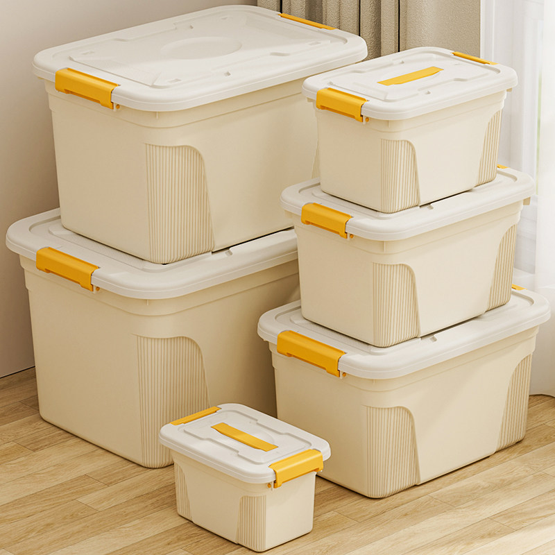 奶油风塑料收纳箱家用杂物收纳盒衣服玩具书本大号整理箱储物箱子