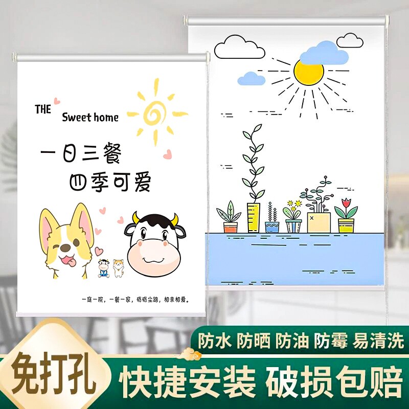 卷帘免打孔遮阳办公室卧室阳台升降式遮光防水2026新款手拉卷拉式