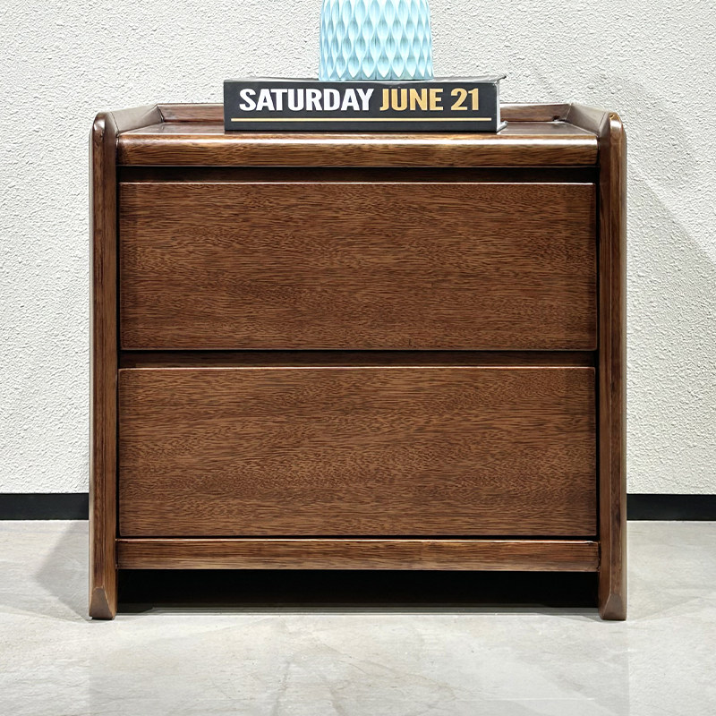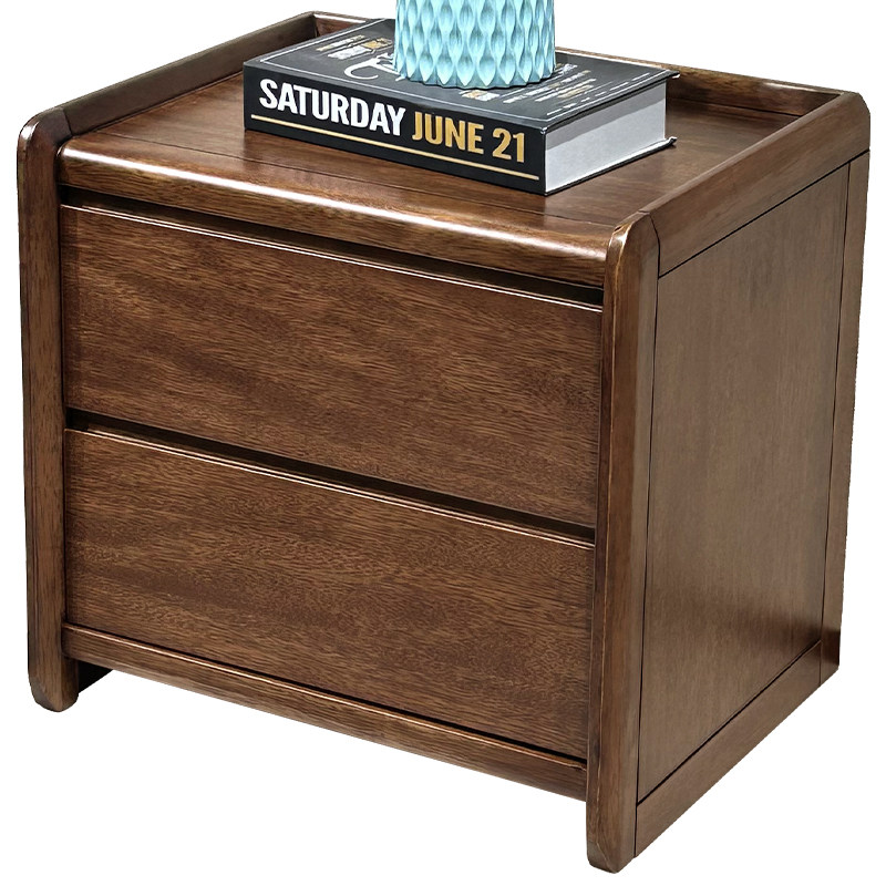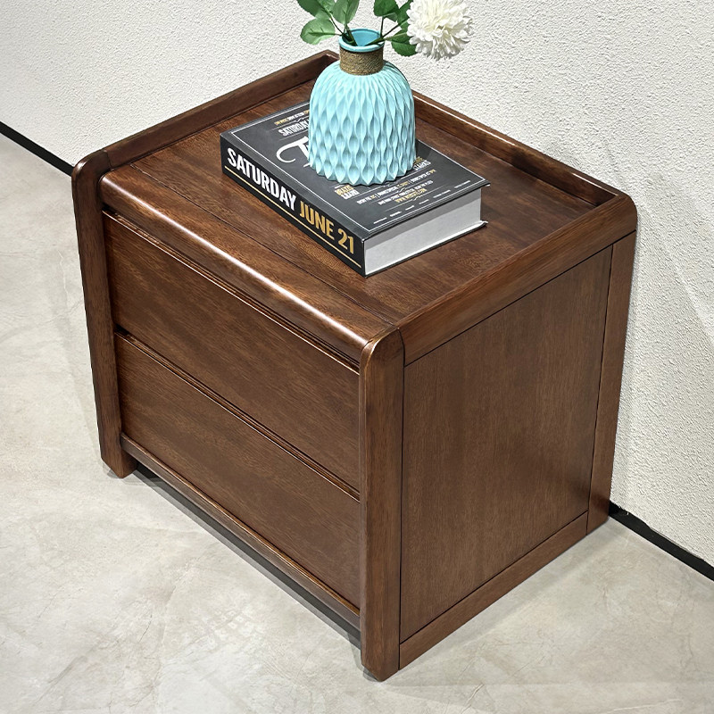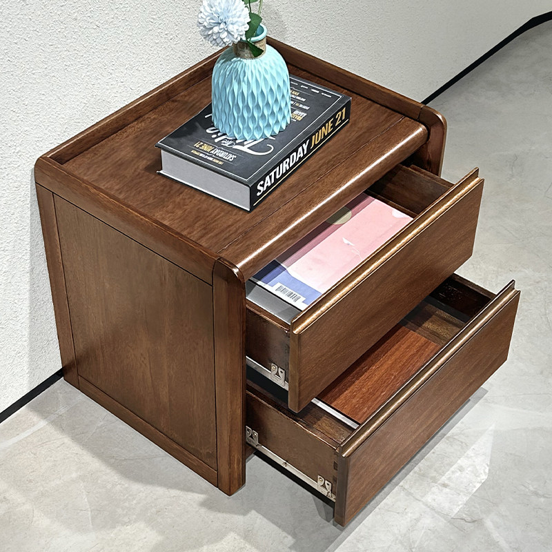 全实木床头柜现代简约胡桃木双抽储物柜卧室床头置物柜家用收纳柜