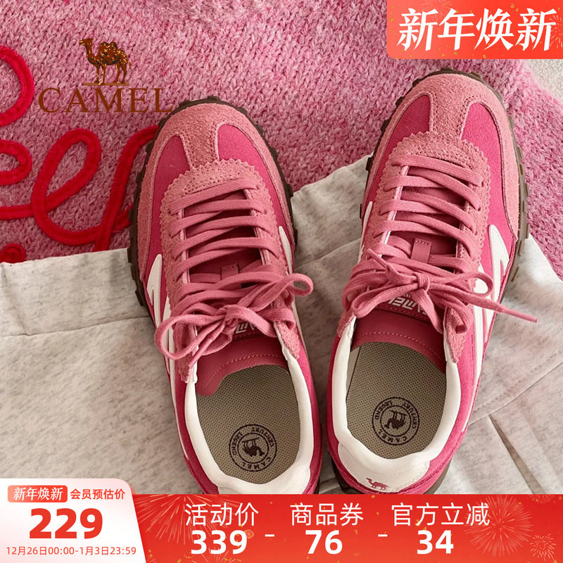 迪丽热巴应援色鞋子骆驼山海运动鞋女鞋低帮复古德训鞋女休闲板鞋