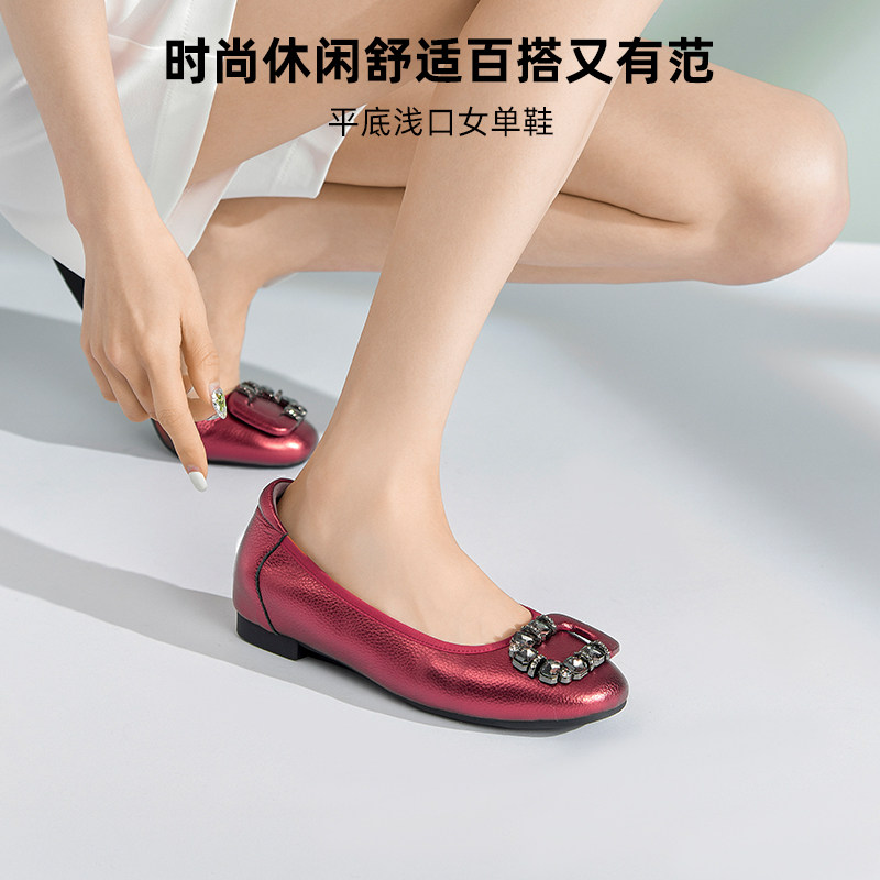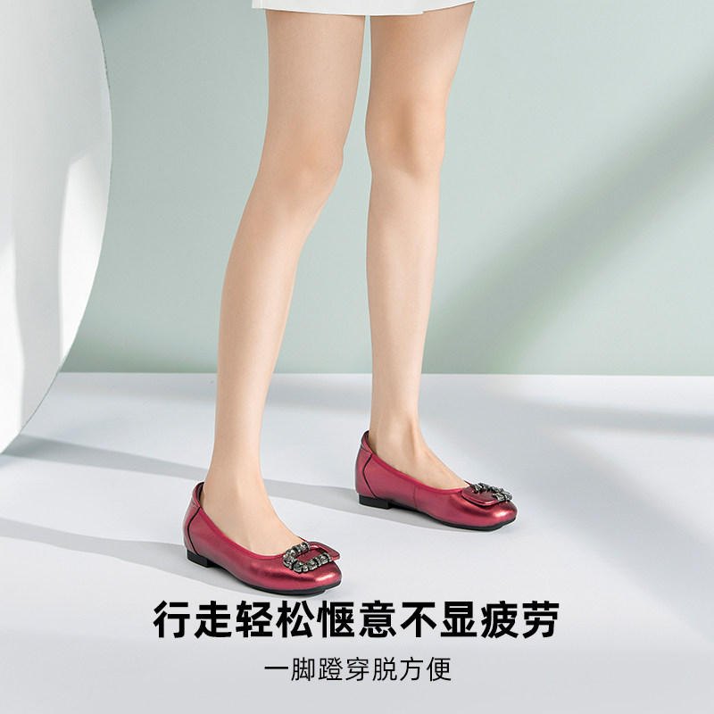 米霏~【羊皮版】红色单鞋女平底法式气质软底芭蕾瓢鞋温柔晚晚鞋