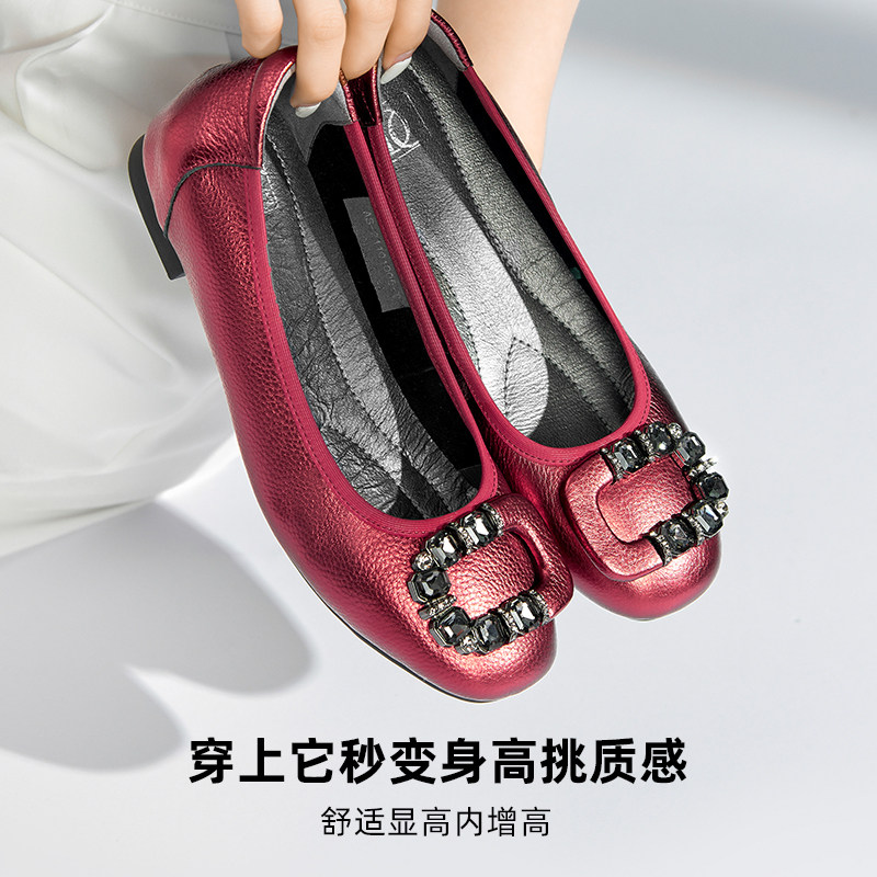 平底单鞋女女鞋2025春季新款真皮百搭舒适孕妇鞋内增高浅口瓢鞋