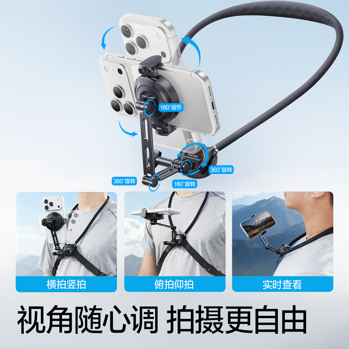 闪魔挂脖手机支架第一视角拍摄设备脖子磁吸神器视频专用胸前直播适用大疆action6/5pro/4运动相机gopro配件
