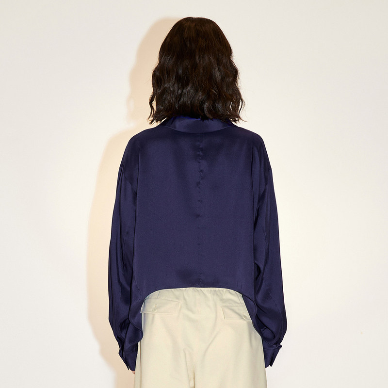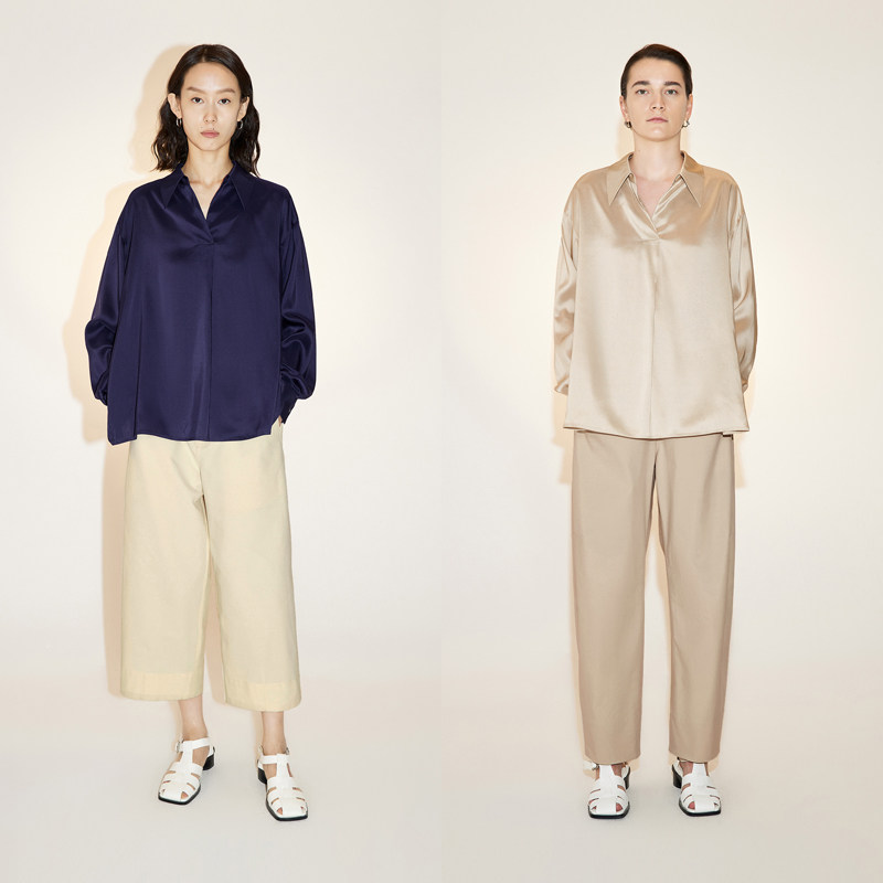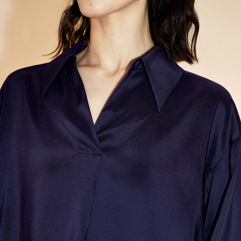 LESS桑蚕真丝衬衣女翻领简约休闲宽松长袖衬衫2N6214070