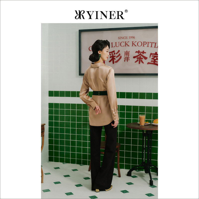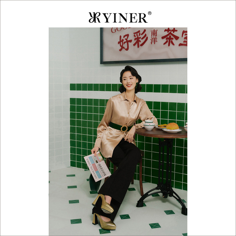 【1996系列】YINER音儿女装冬季醋酸香槟金色质感衬衫上衣