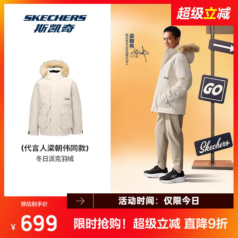 【梁朝伟同款】斯凯奇派克羽绒服男女保暖舒适短款毛领连帽外套