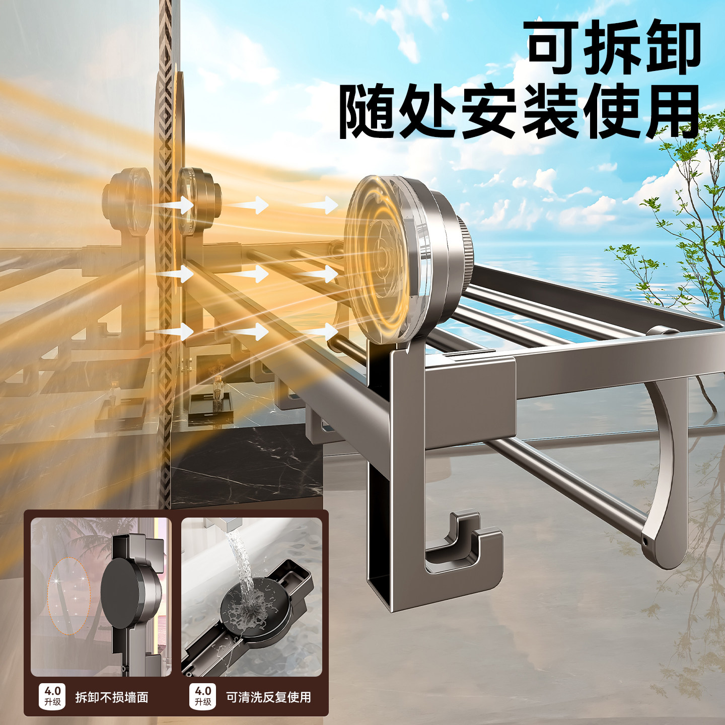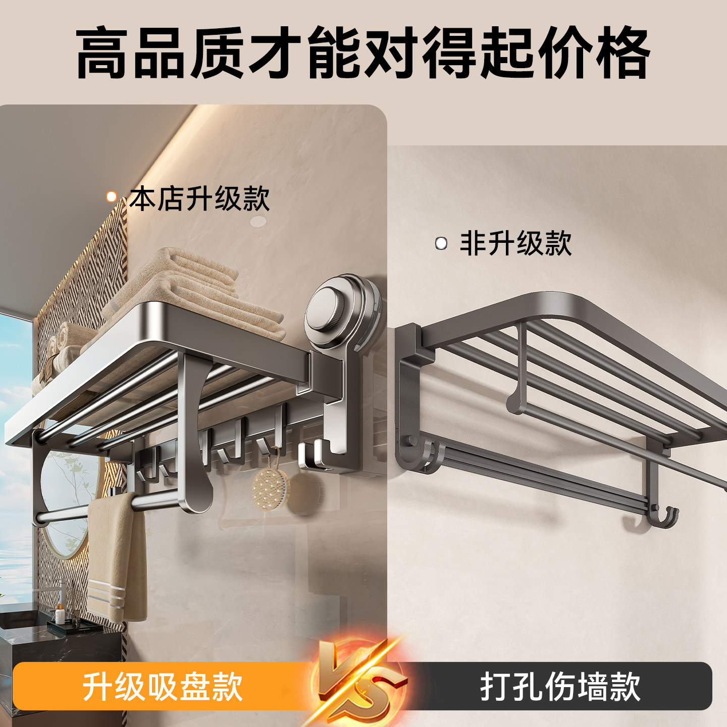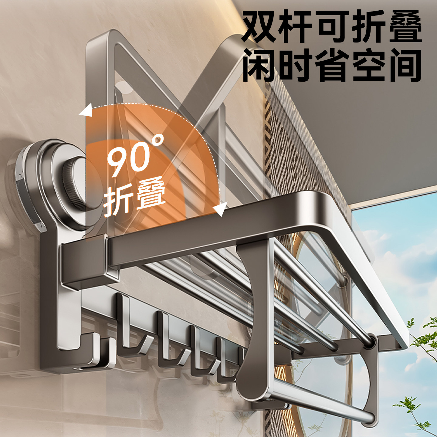百悍吸盘毛巾架卫生间免打孔毛巾杆厕所卫浴浴室置物架挂衣架挂架