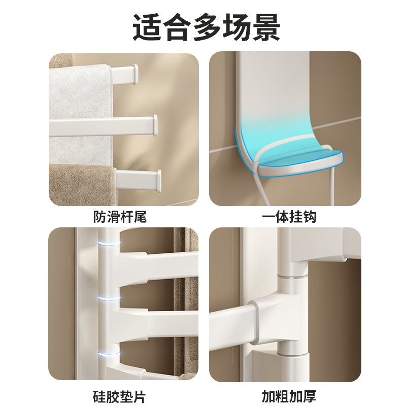 吸盘毛巾架卫生间伸缩毛巾杆免打孔浴室置物架洗手间浴巾收纳挂架