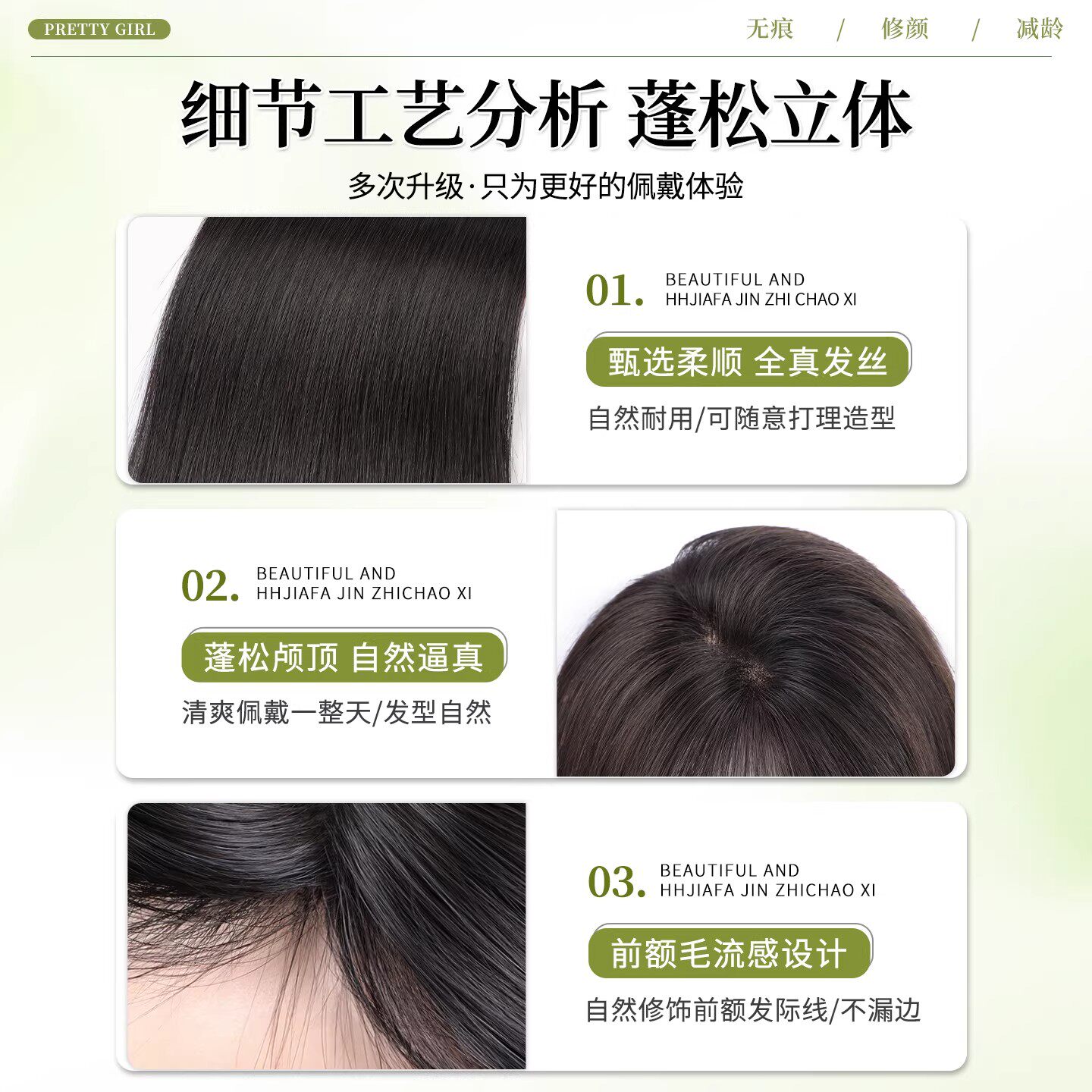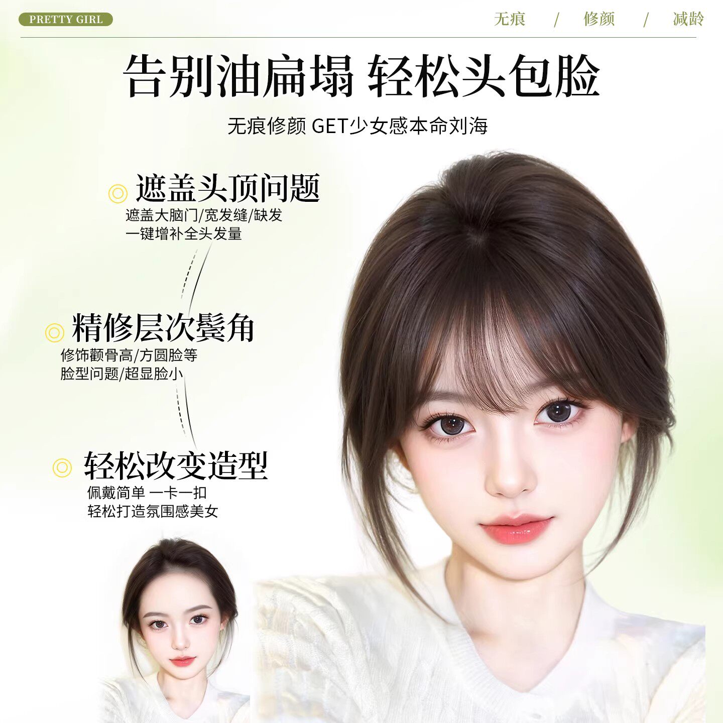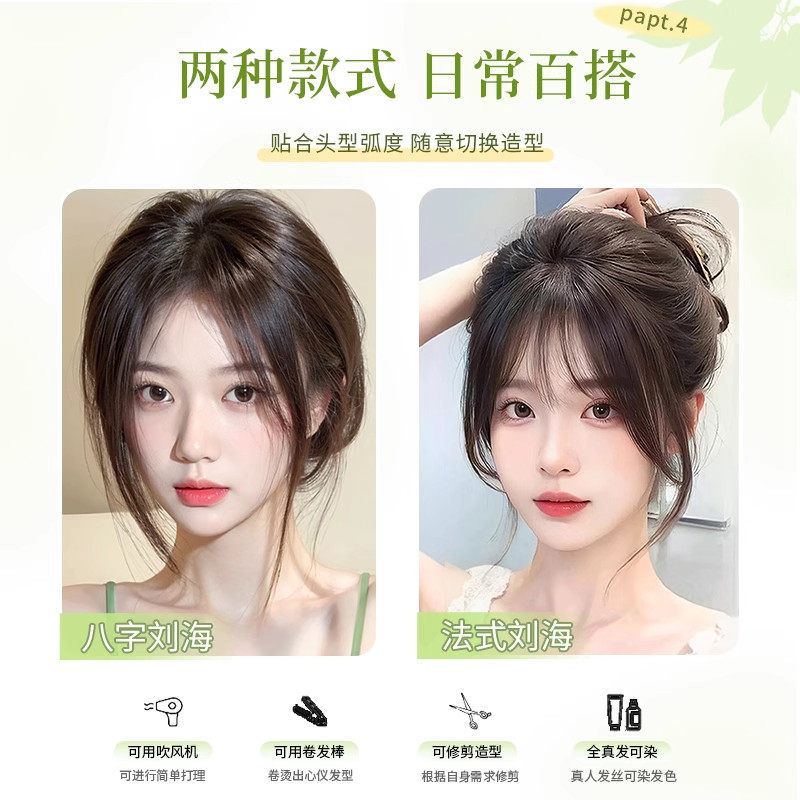 刘海假发女片头顶遮白发增发量真发蓬松高颅顶自然前额无痕补发片