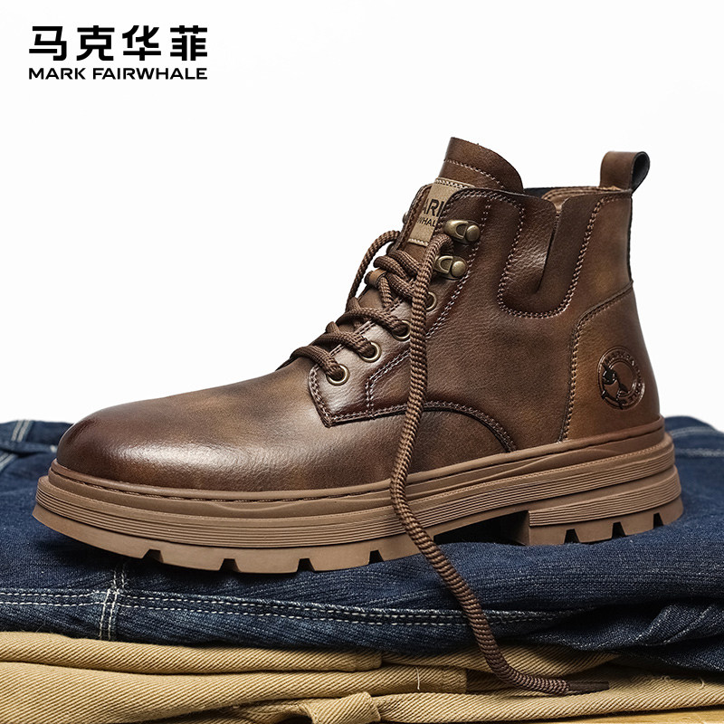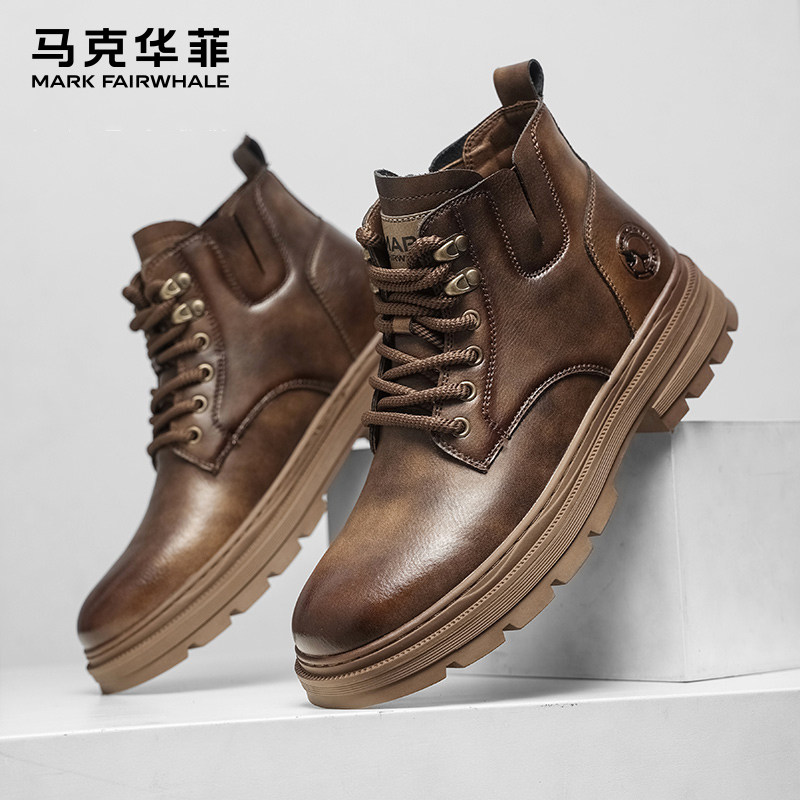 马克华菲马丁靴男高帮工装男鞋英伦风男士机车靴冬季中帮软皮靴子