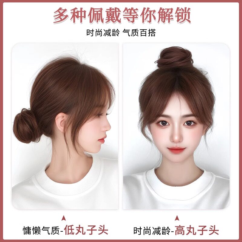 低扎丸子头假发鸡毛头抓夹盘发发包慵懒感造型头饰自然蓬松后脑勺