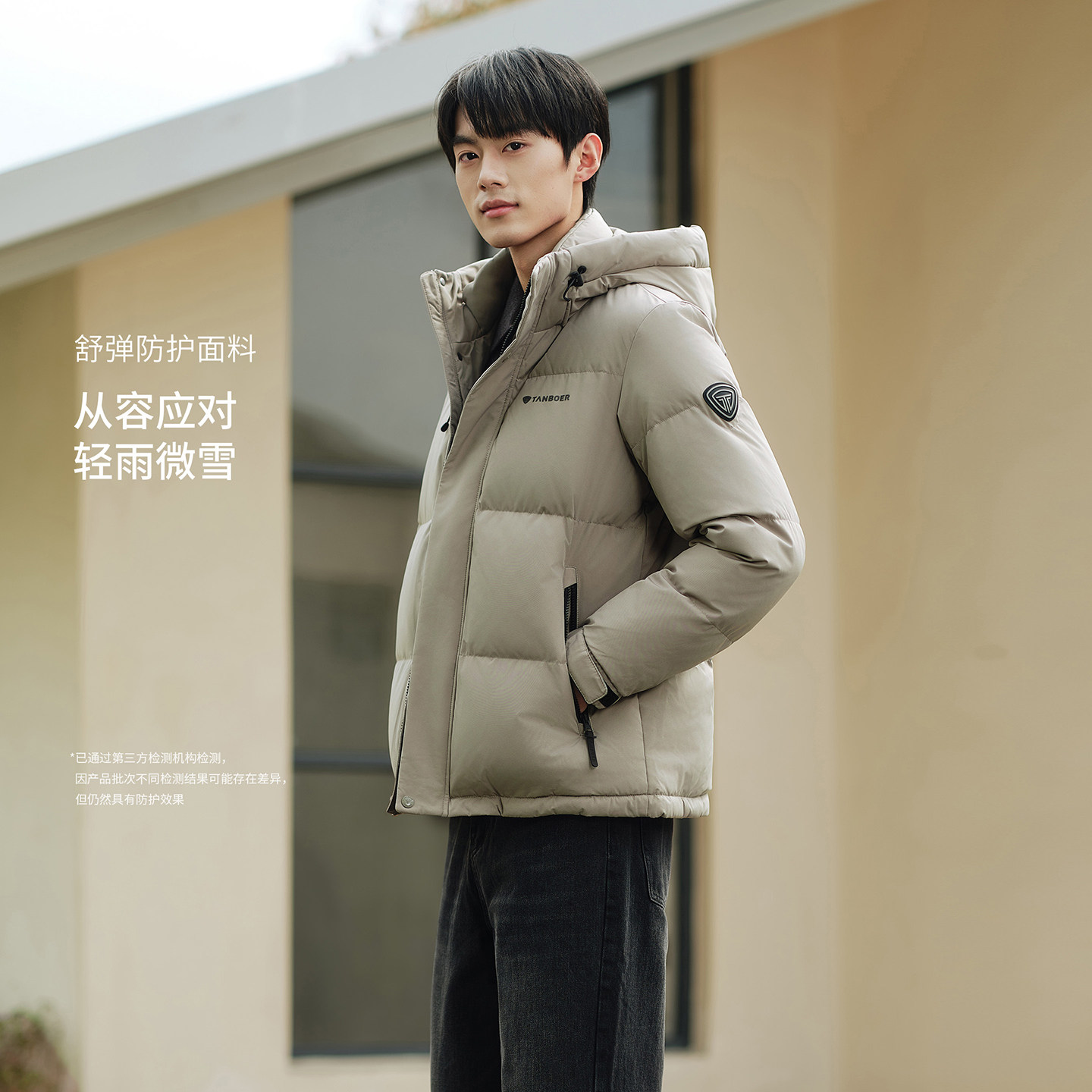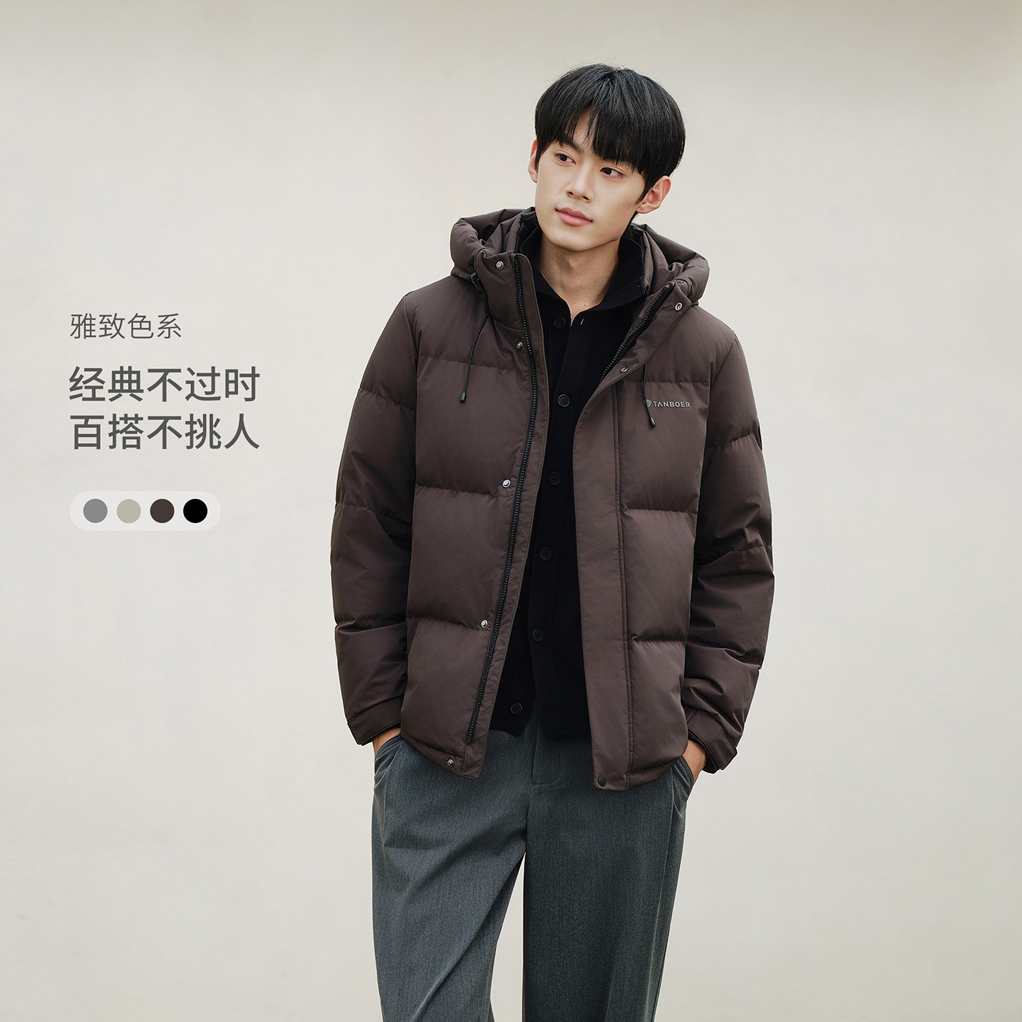坦博尔25冬季新款羽绒服男士短款连帽加厚保暖百搭商务品质外套HY