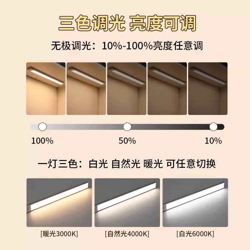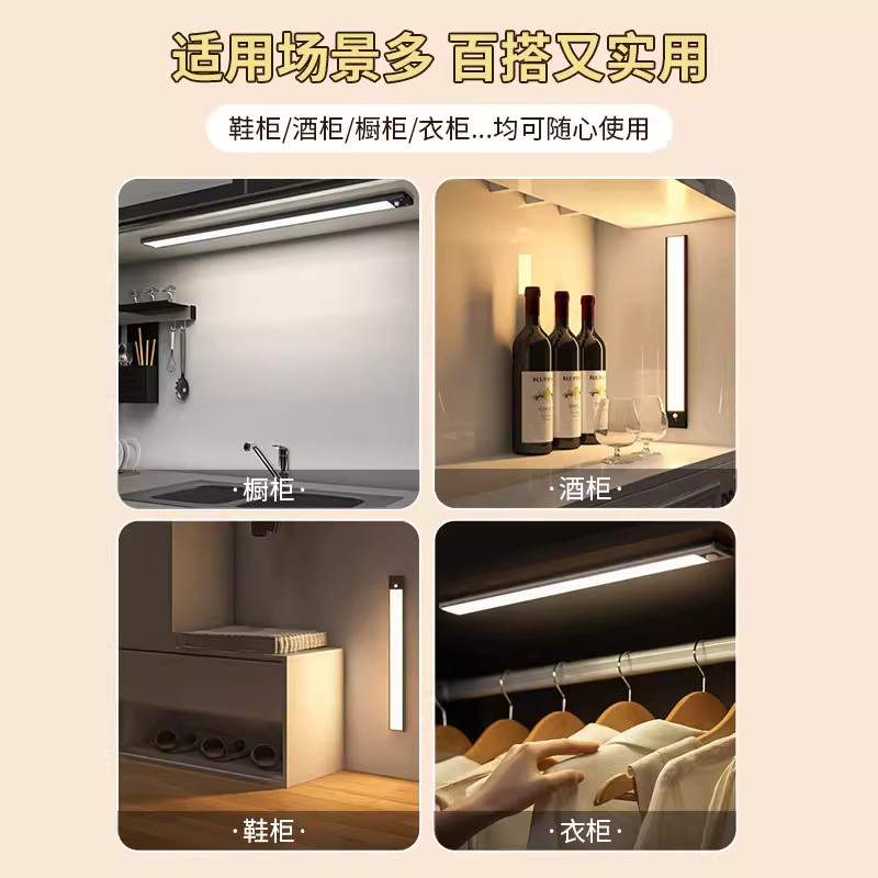 led橱柜灯带可充电式自动感应厨房衣柜酒柜鞋柜灯条无线自粘磁吸